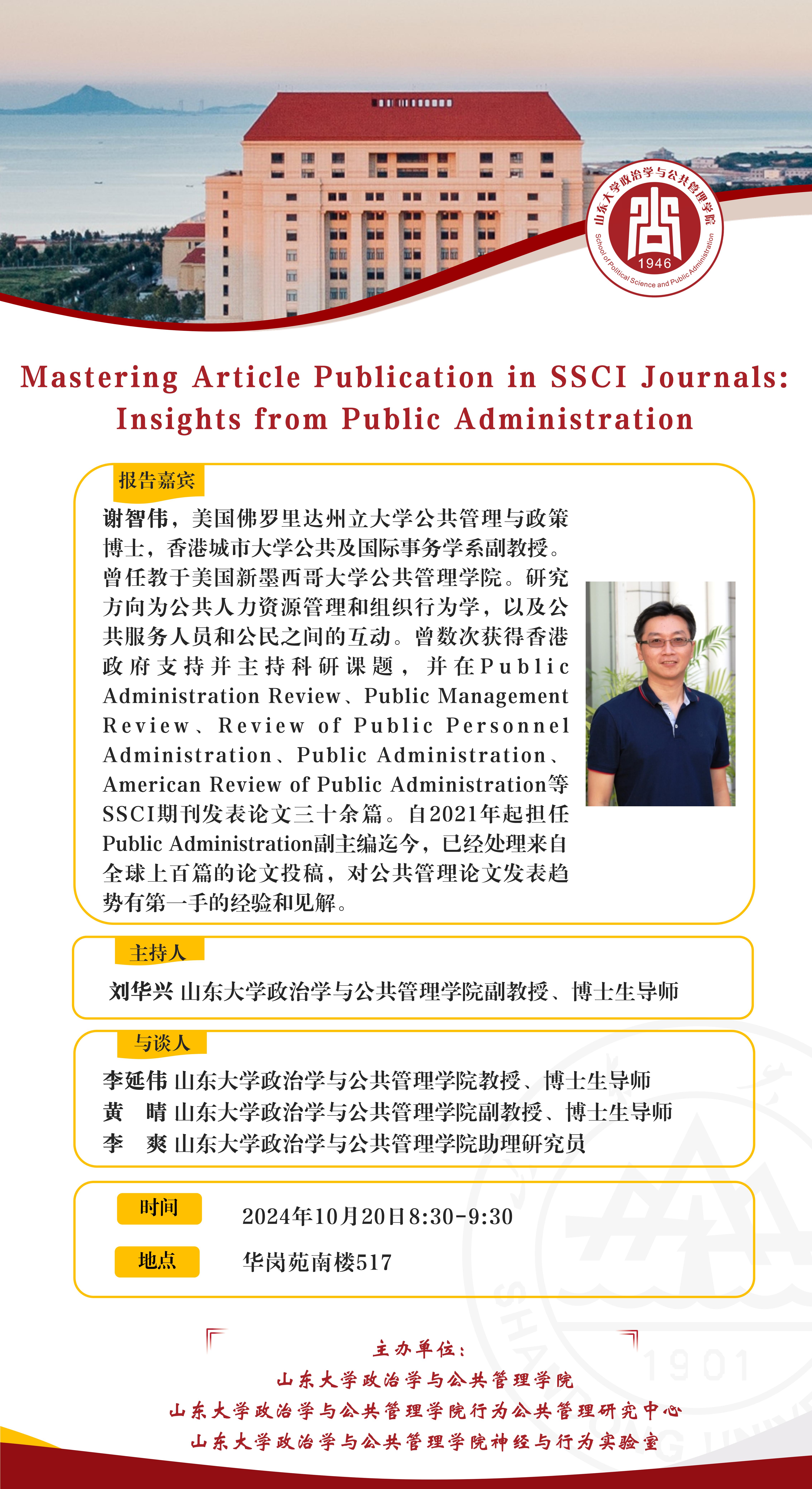 上一篇:【讲座预告】A Moderated Mediation Model on the Relationship Among Public Service Motivation (PSM), Self-Efficacy, Job Satisfaction, and Readiness for Change