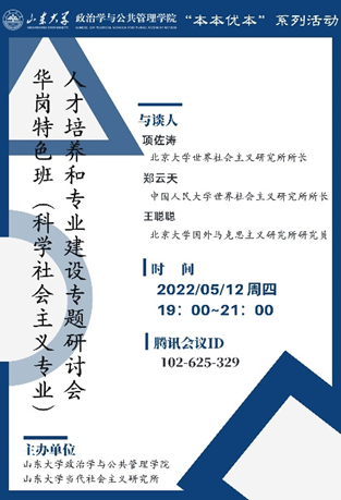 2022年5月12日晚,滚球买球的app官网、滚球买球的app官网当代社会主义研究所召开华岗特色班(科学社会主义专业)人才培养和专业建设专题研讨会。会议由滚球买球的app官网副院长赵婷主持,北京大学世界社会主义研究所所长项佐涛老师、中国人民大学世界社会主义研究所所长郑云天老师和北京大学国外马克思主义研究所研究员王聪聪老师作为与谈人,滚球买球的app官网华岗特色班(科学社会主义专业)的本科生参与此次研讨会。