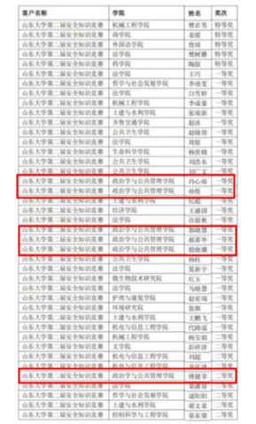 1、在滚球买球的app官网第二届安全知识竞赛暨第五届消防安全知识竞赛中,我院冯心雨、孙悦等同学获一等奖,付健菲、刘小娜等同学获二等奖,李兆欣、李丽等同学获三等奖;在山大研究生学术行为规范知识竞赛中,我院周雨琪、李贵香、杨歆琦等同学获三等奖,部分同学获优秀奖;