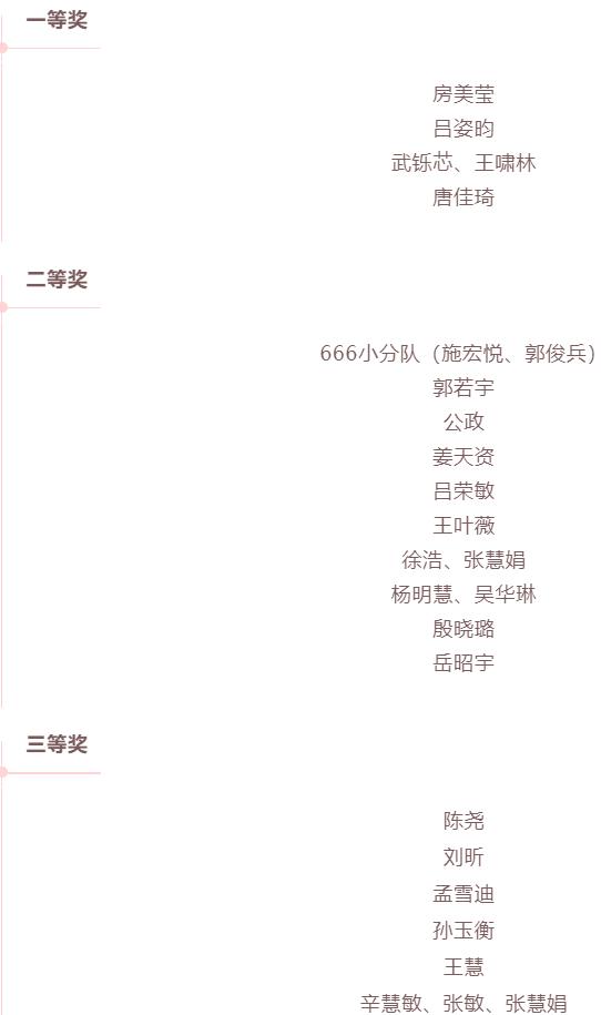 1、在芝兰三月三·诵读山大活动中,我院武铄芯、王啸林同学获一等奖,王叶薇、徐浩等同学获二、三等奖;在芝兰三月三·“思美杯”校园美育大赛中,我院李娜、辛慧敏、苗英荟同学获三等奖,孙悦、张慧娟、陈梦露等同学获优秀奖;