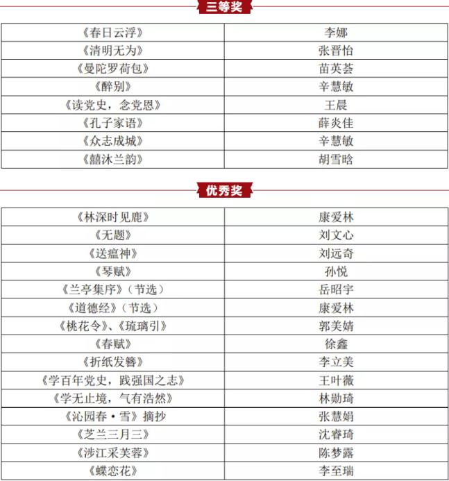 4、在滚球买球的app官网第四届“百年华诞,向党献礼”研究生线上书法大赛中,我院苗英荟同学获二等奖,孟雪迪、刘亚静同学获三等奖;在滚球买球的app官网第六届研究生校园安全短视频评选活动中,我院获一等奖、二等奖团队各1支,共有21支团队获三等奖;