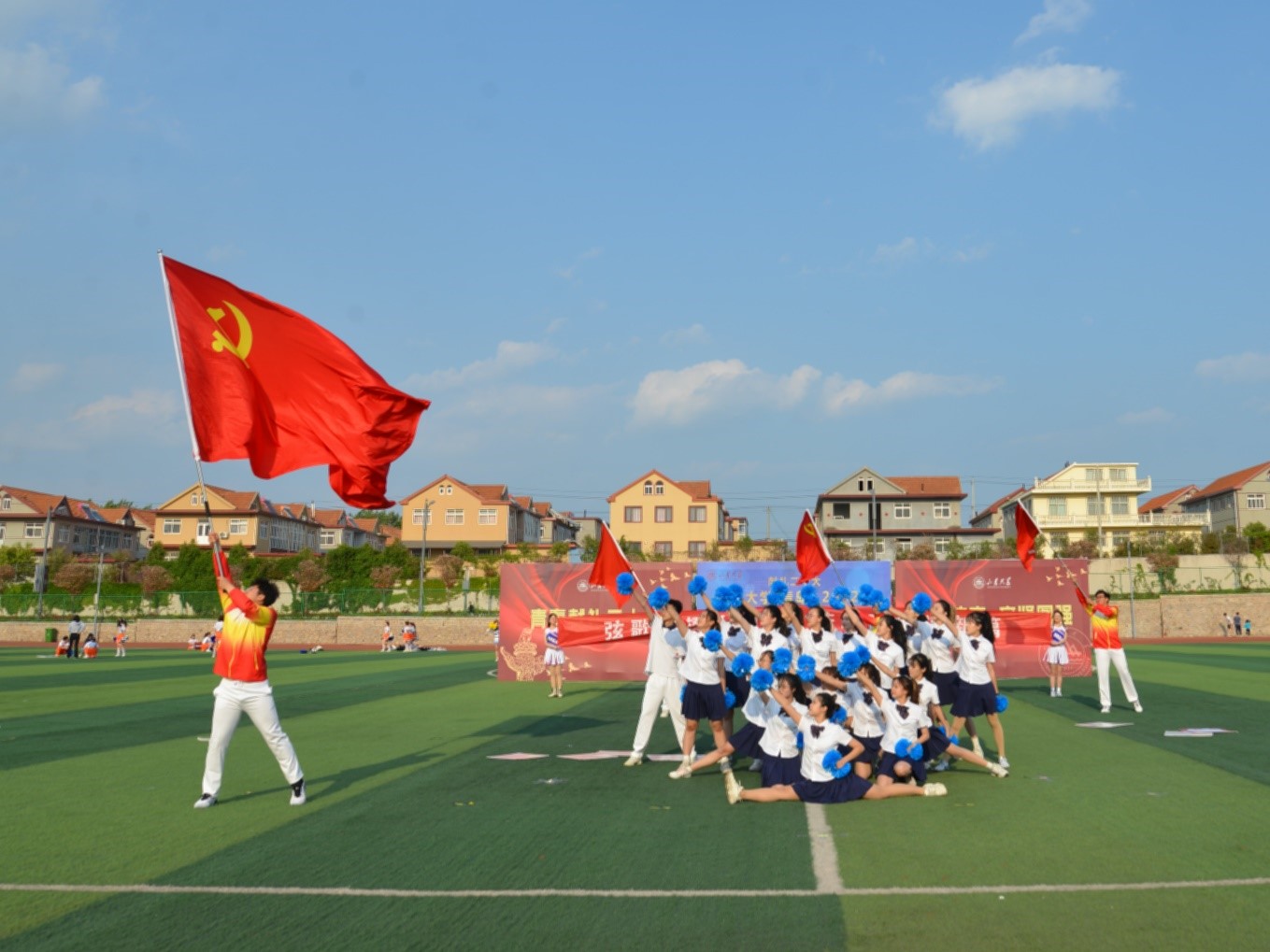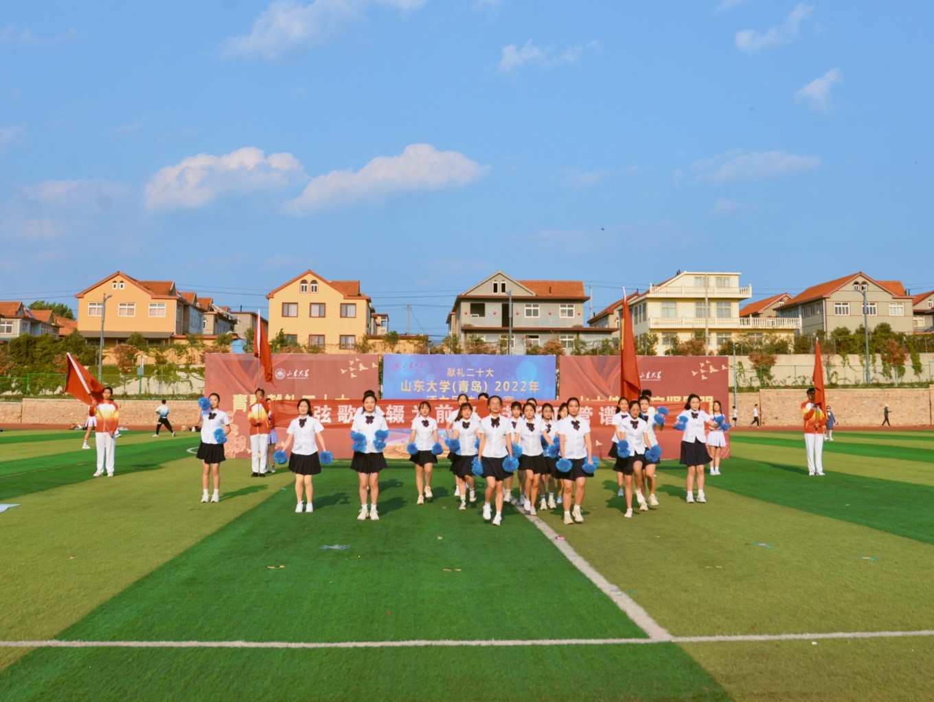 5月13日下午,滚球买球的app官网(青岛)2022年“青春献礼党的二十大”系列体育活动之活力团体操比赛决赛在田径场举行。此次比赛由滚球买球的app官网体育委员会主办,青岛校区学生工作部(处)、本科教育办公室(公共教学管理服务中心)、体育学院、健美操社团承办。滚球买球的app官网团体操队参加了本次比赛。校区党工委副书记郭培良出席活动。学院党委副书记马桂兰、团委书记于玲到场助威。