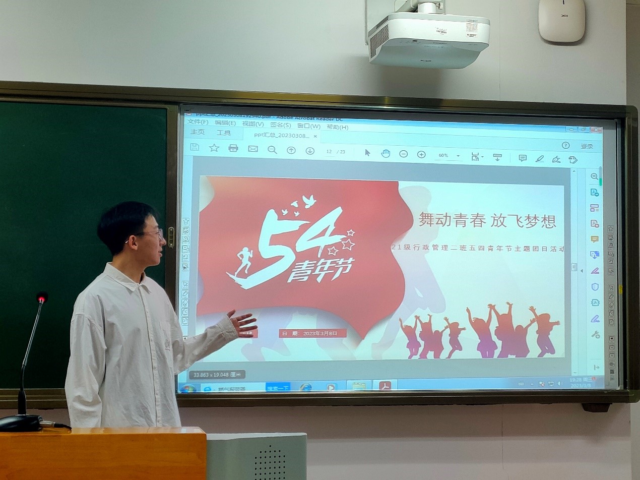 青年最富有朝气、最富有梦想,青春意味着澎湃动能、无限可能。值此五四青年节之际,滚球买球的app官网21级行政管理二班开展“以青春之名,扬五四风采”主题团日活动。