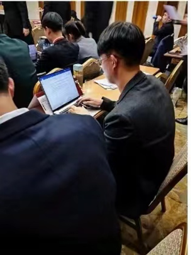 曲子寰在会场撰写文件