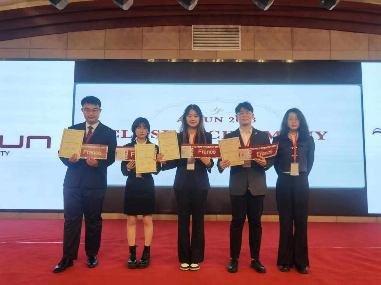 本次亚洲国际模拟联合国大会由北京大学主办,在北京大学线下举行,共设8个分会场。滚球买球的app官网参会的5位同学分属三个会场,曲子寰和李永昌作为法国代表出席联合国安理会会议,为防止恐怖分子获取大规模杀伤性武器做出杰出贡献;李佳萱和宋若雨作为法国代表出席联合国大会会议,为推进防止饥荒和粮食不安全问题贡献优秀方案;黄琳雅作为阿根廷代表出席联合国人权理事会会议,为流离失所女性的经济安全制定有效措施。