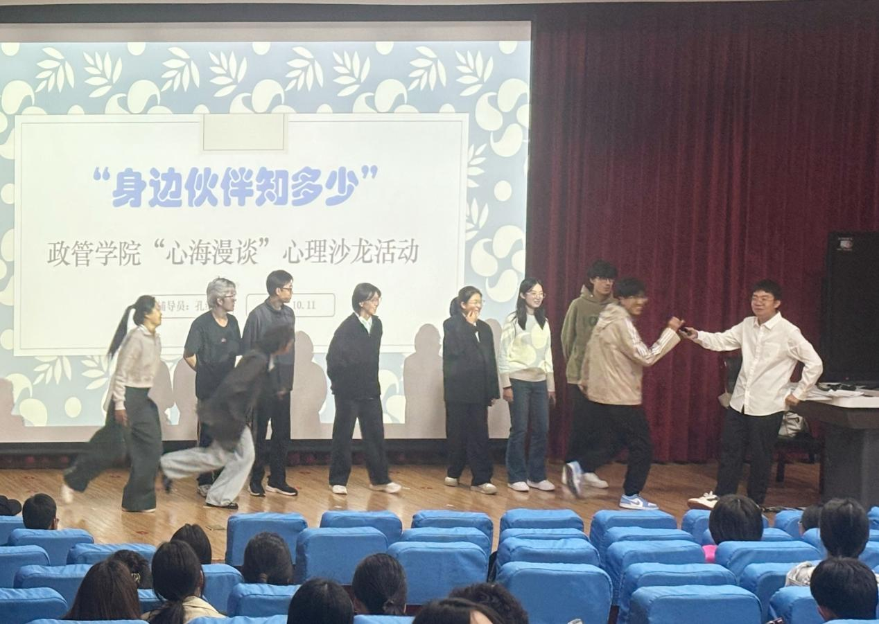 本次心理沙龙中,孔维彦组织学生开展自我介绍、互动游戏和心理交流等多项活动,在轻松愉快的氛围中打破隔阂、增进友谊。活动伊始,通过简短而有趣的自我介绍,同学们分享了自己的姓名、专业、兴趣爱好以及个人特色,不仅加深彼此了解,还激发了大家展示自我、表达自我的勇气。
