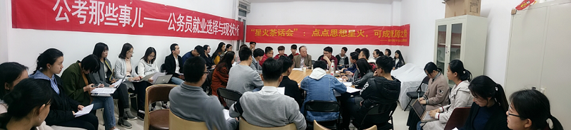 本次茶话会让同学们进一步了解了公务员考试方面的知识,老师细致而务实的讲解也对同学们未来生涯规划提出了建议。“点点思想星火,可成燎原之势”,“星火”茶话会始终致力于提供一个师生交流的平台,传承探索求知的精神。