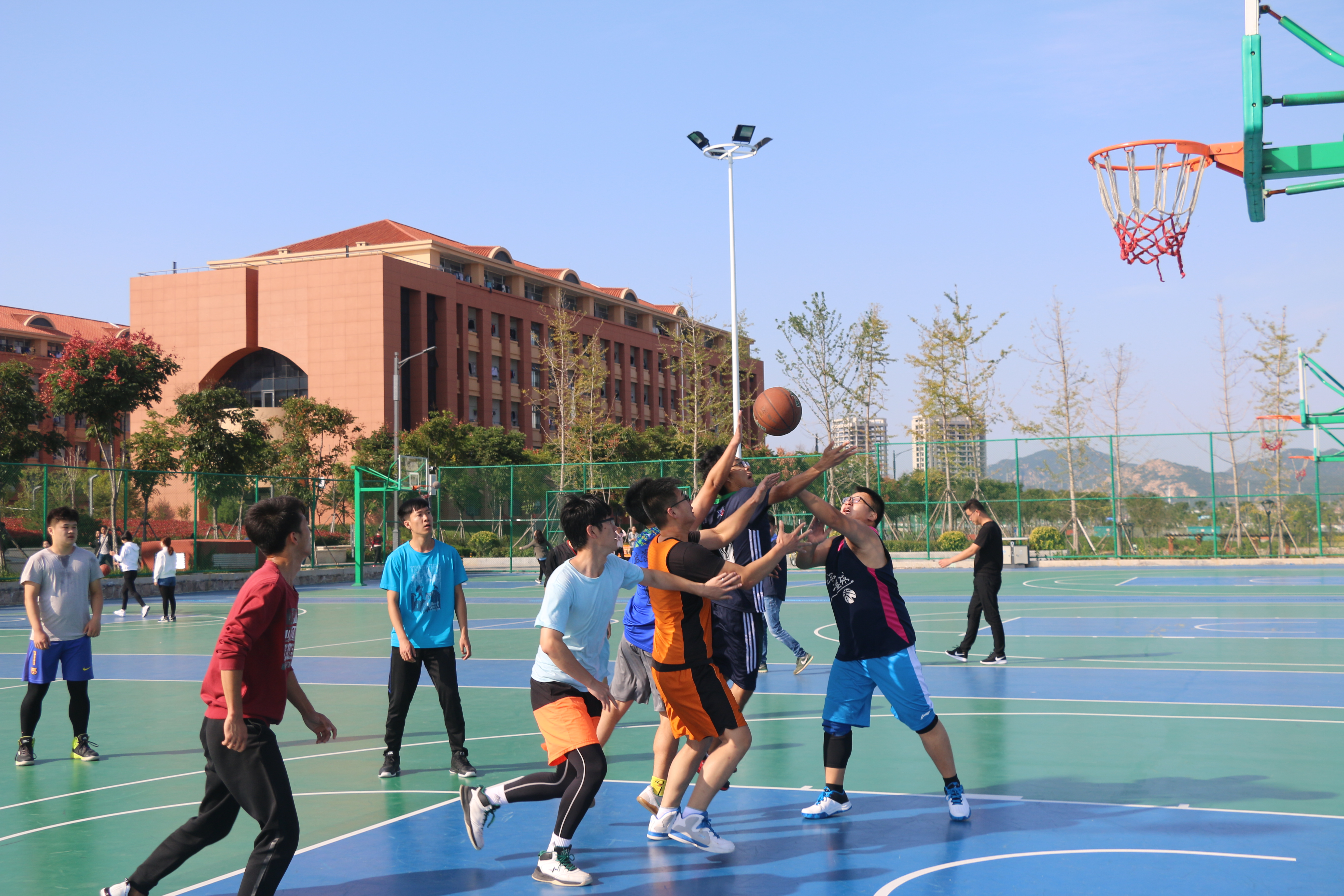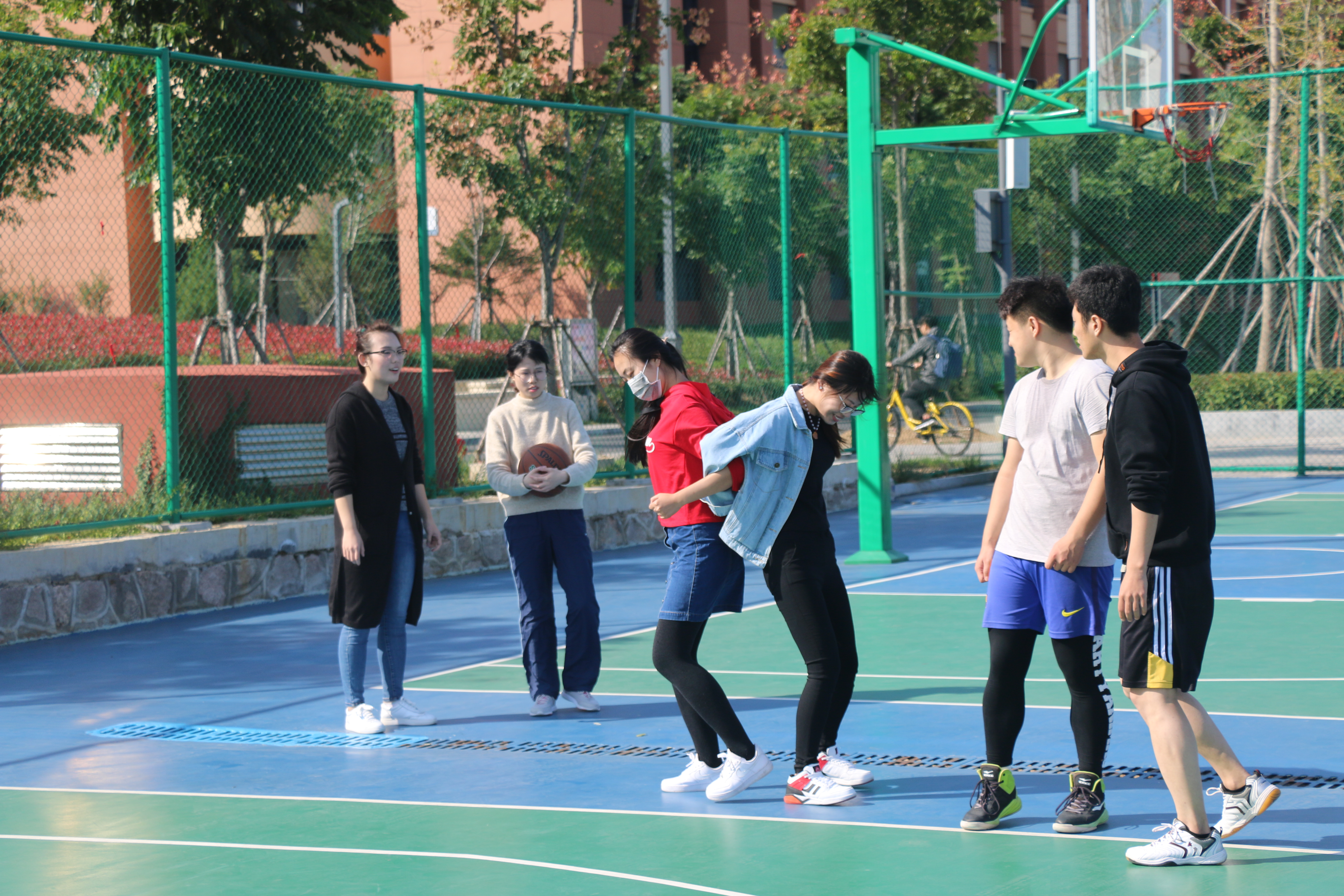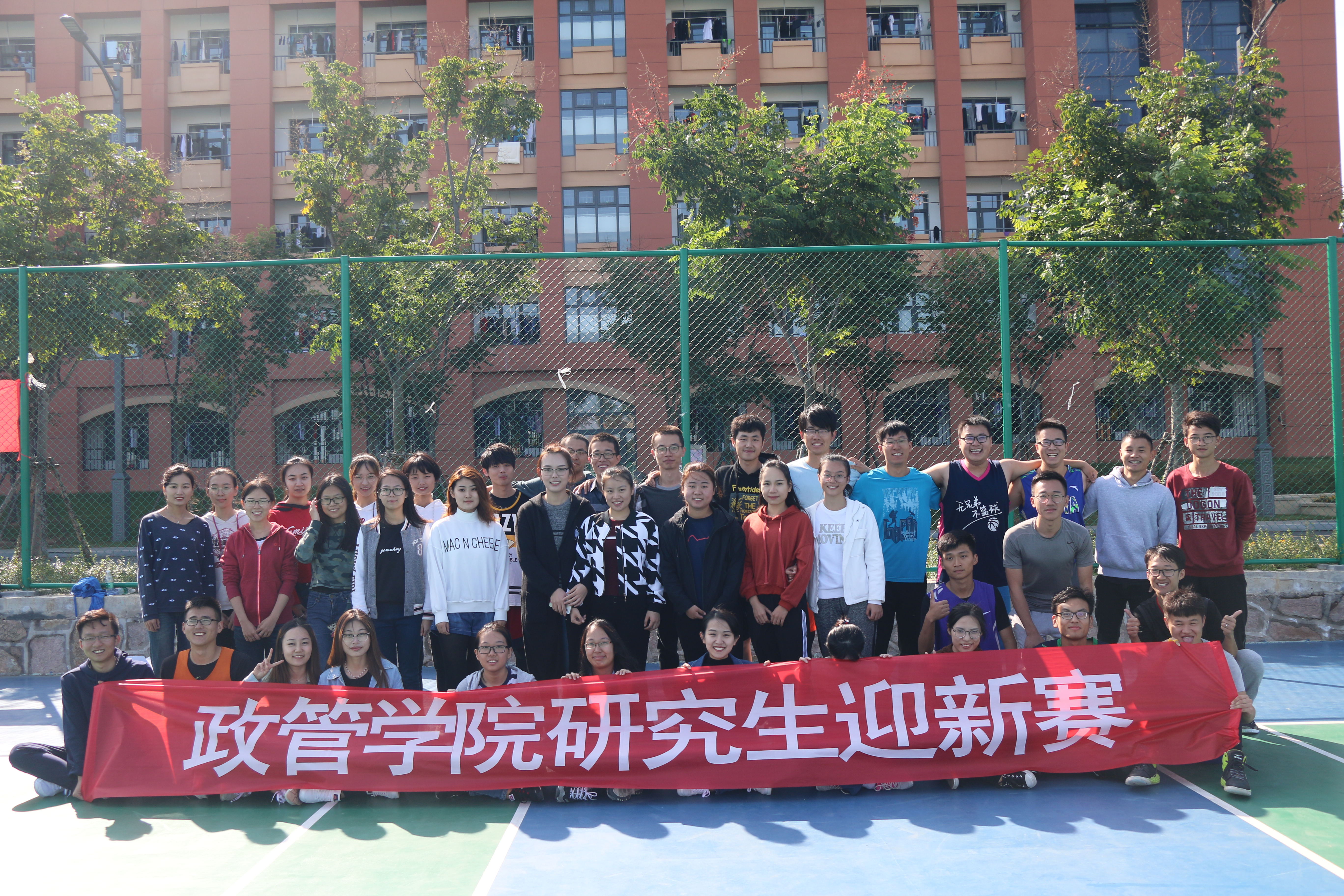 10月15日,由我院研究生会举办的“政管迎新篮球系列赛”在青岛校区顺利开展。这是一场面向学院全体研究生的篮球系列赛,比赛分为两个部分:迎新篮球赛和篮球趣味赛。比赛当天上午,青岛校区蓝天白云、阳光明媚,我院同学早在赛前半小时就聚集在篮球场,参赛队员进行了赛前热身,观众也在场边准备为队员们加油喝彩。