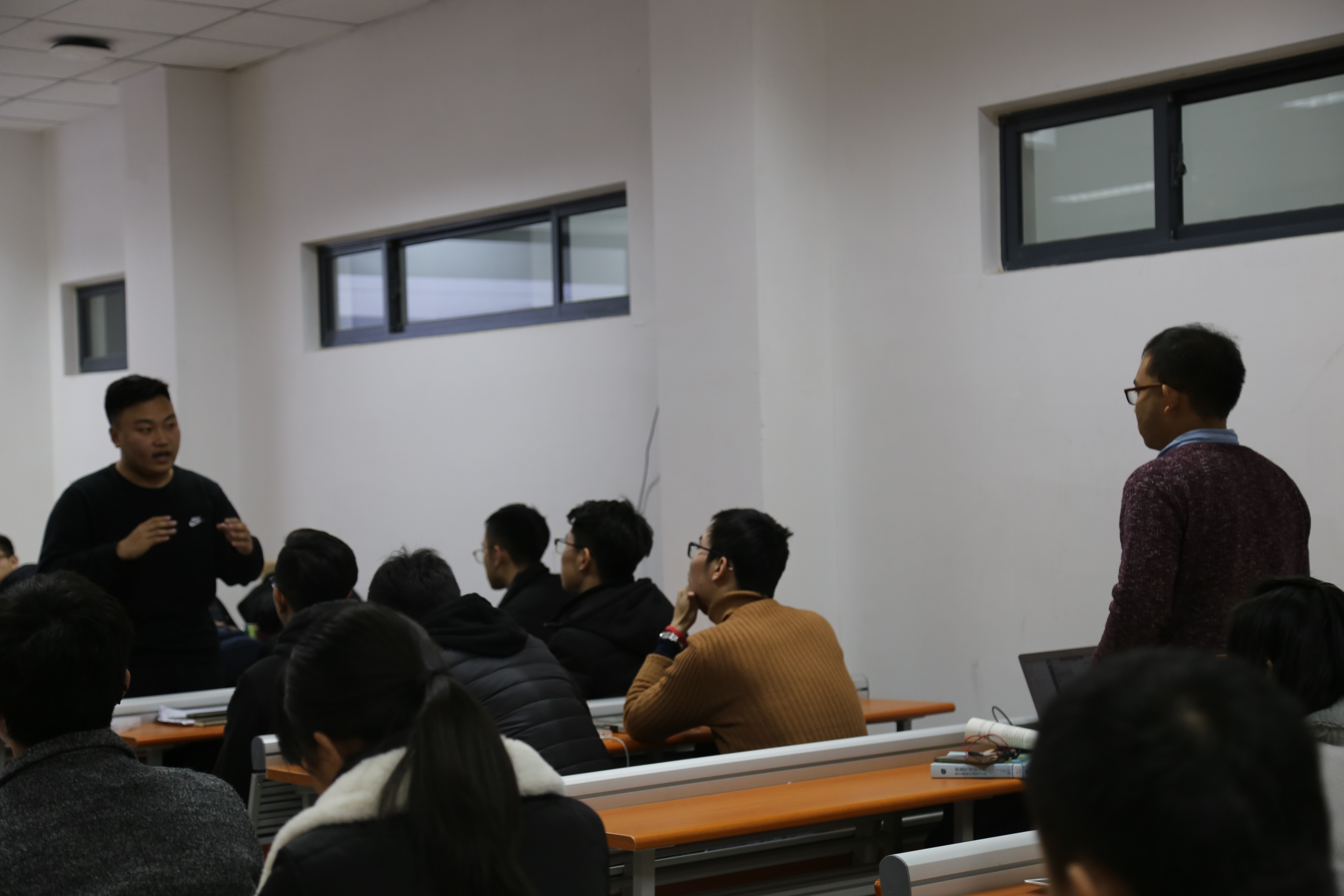 晚七时活动正式开始,在进行简单的介绍后,第七届全国高校模拟市长大赛一等奖得主、国家奖学金获得者陈韵竹首先系统地展示了社科研究是什么及其步骤、作用,同时也分享了阅读文献的方法技巧与自己在比赛中的感悟体验。之后,已被录取为清华大学公共管理学院直博生、第十五届“挑战杯”全国大学生课外学术科技作品竞赛社会组二等奖获得者华冉从选题、调研及报告的撰写、团队的组建三个方面深入浅出的介绍了在科研创新的过程中应该注意的事项。随后,保研至浙江大学公共管理学院、第十五届“挑战杯”课外学术科技作品竞赛全国一等奖获得者洪达以“挑战归来话成长”为题,结合自己在“挑战杯”的获奖经历,从选题、报告结构、研究方法、量化研究到写作过程细致地讲解了在准备“挑战杯”比赛的技巧。接下来保研至清华大学公共管理学院、两次获得国家奖学金的柳馨结合自己的经历从什么是科创谈起,对挑战杯进行了总体的介绍,并分享了自己在选题、团队、调研、报告、作品呈现方面的心得与体会,另外还向同学们推荐了比较实用的检索工具、书籍还有讲座,鼓励同学们积极参加科创活动,不怕出错、勇于尝试,多磨砺自己。紧接着保研至南京大学政府管理学院、第十五届“挑战杯”大学生课外学术科技作品竞赛一等奖获得者秦梦真除了结合自己的“挑战杯”经历介绍了调研过程的经验之外,也介绍了在研究生推免过程中应该注意的事项和相关的问题。最后进入提问环节,同学们热情高涨,纷纷提出自己困惑的问题,座下的同学也都在很认真的倾听和思考。