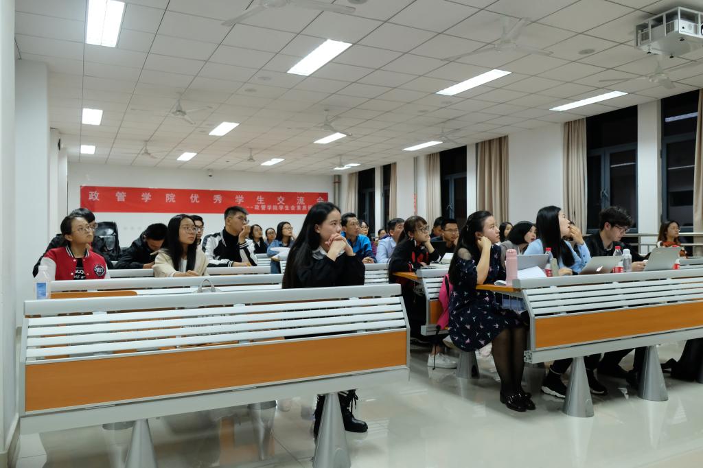 活动开始,主持人简单介绍后,17级公管专业,2017-2018年国家奖学金获得者徐雅静首先分享了进入大学的多方面转变并结合个人经历就大学学习和生活提出了许多贴合新生现实状况的建议,获得了同学们热烈的掌声。之后,17级公管专业,滚球买球的app官网社会实践先进个人马天一就社会实践方面分享了经验,对社会实践的类型,过程以及考核进行了详细的讲解,让同学们对于社会实践有了更深入的认识。16级国际政治专业,国家奖学金获得者、校级社会实践先进个人孙宇飞以接地气的语言就如何做社会研究做了经验分享并通过有趣的案例和引用优秀学长学姐的话表明了自己对大学学习与政治学专业的见解,气氛活泼,激起了大家的思考。紧接着,16级政治学与行政学专业,国家奖学金获得者,社团和社会工作先进个人,社会实践与科研经历非常丰富的王浩瑜为在场同学分析了政治学专业的学科定位,学术科研,与其他学科的区分以及奖学金相关问题。最后,15级行管专业,滚球买球的app官网学生年度人物,国家奖学金获得者,即将攻读清华大学公共管理学院直博项目的孙君就考研和保研结合个人经历做了细致讲解,并倡导同学们培养核心竞争力。在提问环节中,学长学姐们就同学们提出的问题做了认真全面的回答。最后活动在一阵热烈的掌声中结束。