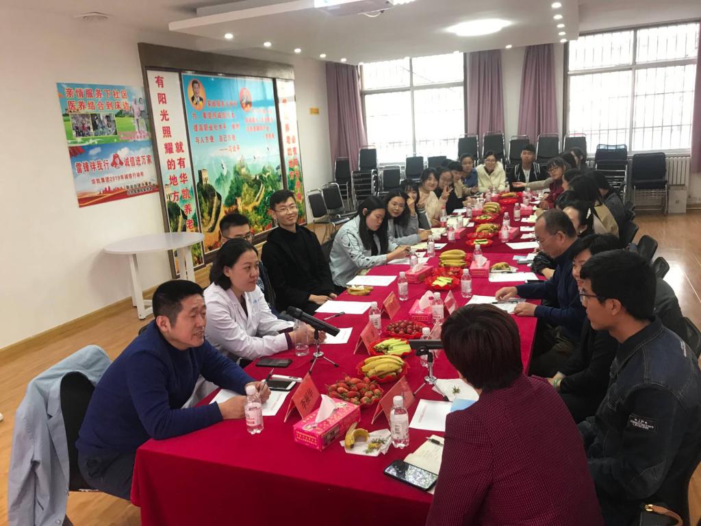 在青岛华凯智慧养老服务中心,同学们实地参观了华凯智慧居家养老管理中心的工作窗口,远程视频问诊、互联网医联体远程心电中心,以及华凯健康产业集团研发的可以进行疾病早期筛查、早期干预等项预测的 “HRA健康评估系统”,体验了HRA健康评估系统、量子护理康养、氧舱体验中心等综合服务功能区域和仪器。在交流会上,同学们针对在社区建立护理中心的合作方式,医院和康复中心对接中获取数据的途径,健康管理的对象、当前该模式的困境等相关问题深思考、积极发言,会议气氛热烈。