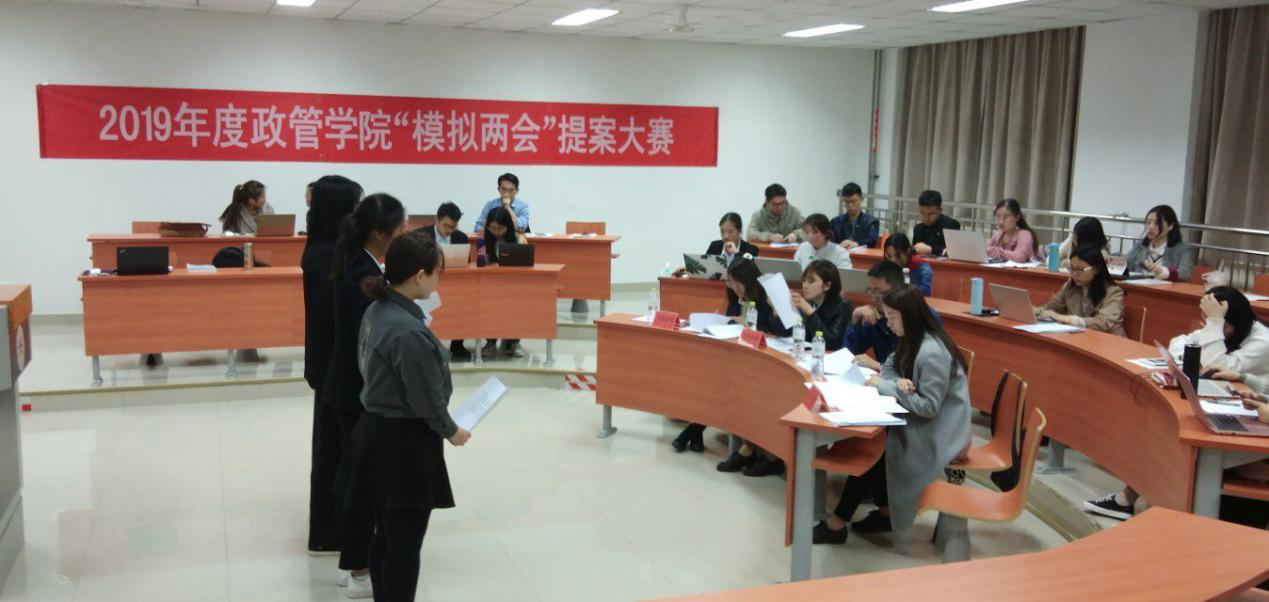 4月15日晚,由滚球买球的app官网学生会主办的“2019年度‘模拟两会’提案大赛”在振声院如期举行。滚球买球的app官网滚球买球的app官网副教授赵婷、公共治理研究院助理研究员李进涛、团委书记于玲、导员助理信鸽担任本次大赛的评委。共有八支团队报名参赛,在“模拟两会”大赛上展现风采。