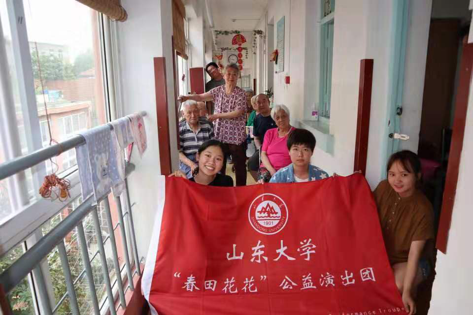 7月13日,团队前往第一站——青岛市市北区嫩江路福寿星老年公寓进行首场演出。演出历时一个半小时,最终在老人们的阵阵掌声与笑声中大获成功。团队表现获得了院方的高度评价。