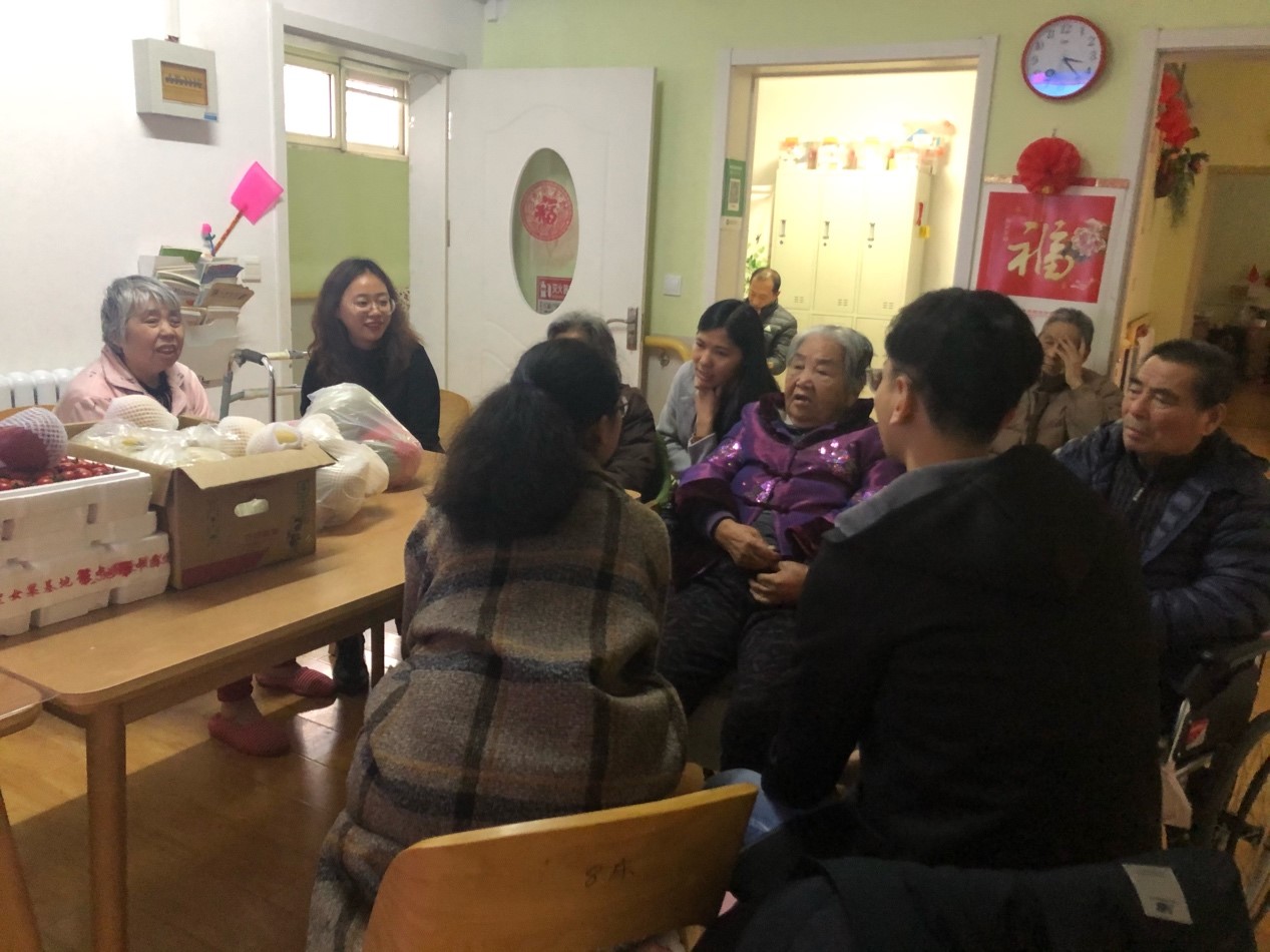 2019年11月30日下午,17级公共事业管理团支部团员志愿者前往青岛市李沧区青鸟颐居长者照护中心开展“关爱老人,与爱同行”志愿服务活动。