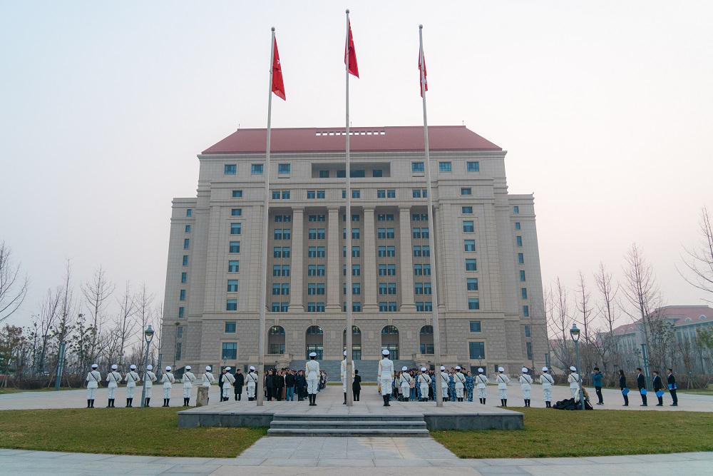 12月9日,青岛校区在育贤广场举行滚球买球的app官网(青岛)纪念“一二九运动”升国旗仪式。滚球买球的app官网(青岛)学工部党支部全体成员、青岛校区学生会、研究生会、红色先锋营、大学生国防教育协会部分同学,滚球买球的app官网2018级本科生200余人参加了活动。