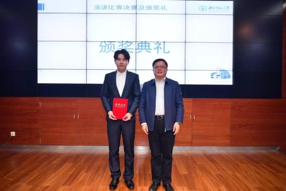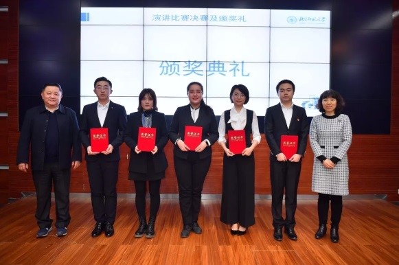 决赛于8日举行,晋级选手重新抽签选题并进行主题演讲。在准备时间十分紧张的情况下,政管学子临危不乱、表现优异。在比赛中,丛日轩同学通过具体事例,对“两个一百年”中的青年使命进行了生动诠释,呼吁我们成为有责任、有担当的时代青年。王之夏同学则围绕“精准扶贫与乡村振兴的有效衔接”主题,揭示其背后的内在逻辑,强调了扶贫同扶志扶智相结合的必要性。最终王之夏同学荣获一等奖,丛日轩同学荣获三等奖。