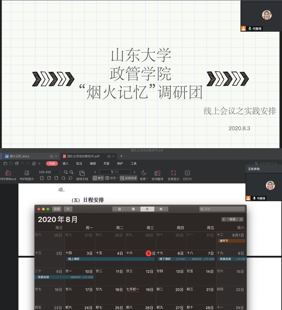 在8月3日~8月5日三天的线上调研期间,“烟火记忆”调研团依托互联网平台,团队成员阅读了大量相关文献资料,通过线上会议展开了充分的讨论,成员互相交流了各自的成果及心得,拓展了在问题研究上的思路,为后续线下调研的顺利开展奠定了基础。