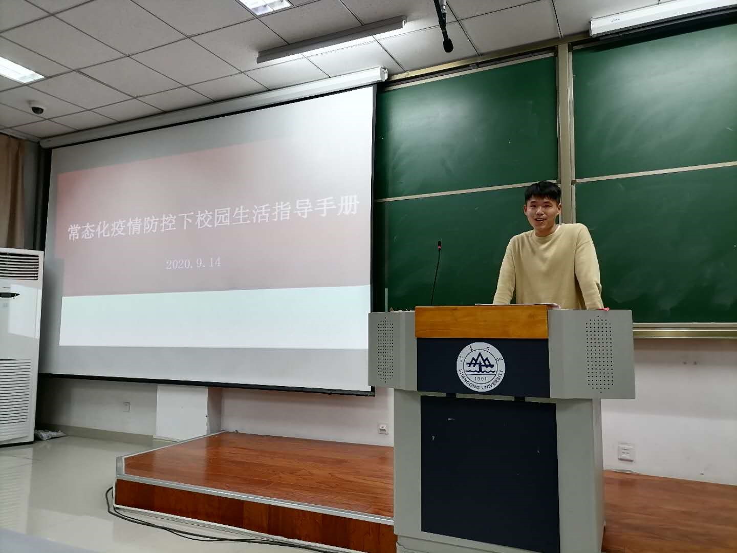 2019级管理班班长朱鑫磊带领新生一起学习了《滚球买球的app官网常态化疫情防控下校园生活指导手册》,从个人防护与健康监测、日常生活规范等五个方面重点介绍了相关内容,在出入校园、体育场馆开放、餐厅供餐等部分向大家强调了诸多细节和重点注意事项,鼓励大家在疫情防控形势依旧严峻的状况下养成学习生活新模式。