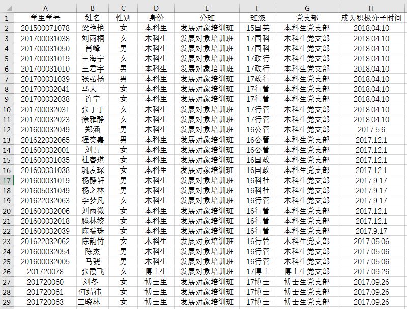 各单位已纳入年度发展计划的党员发展对象(含教工和学生),名单如下。下述名单,均已导入党旗飘飘网络学习平台: