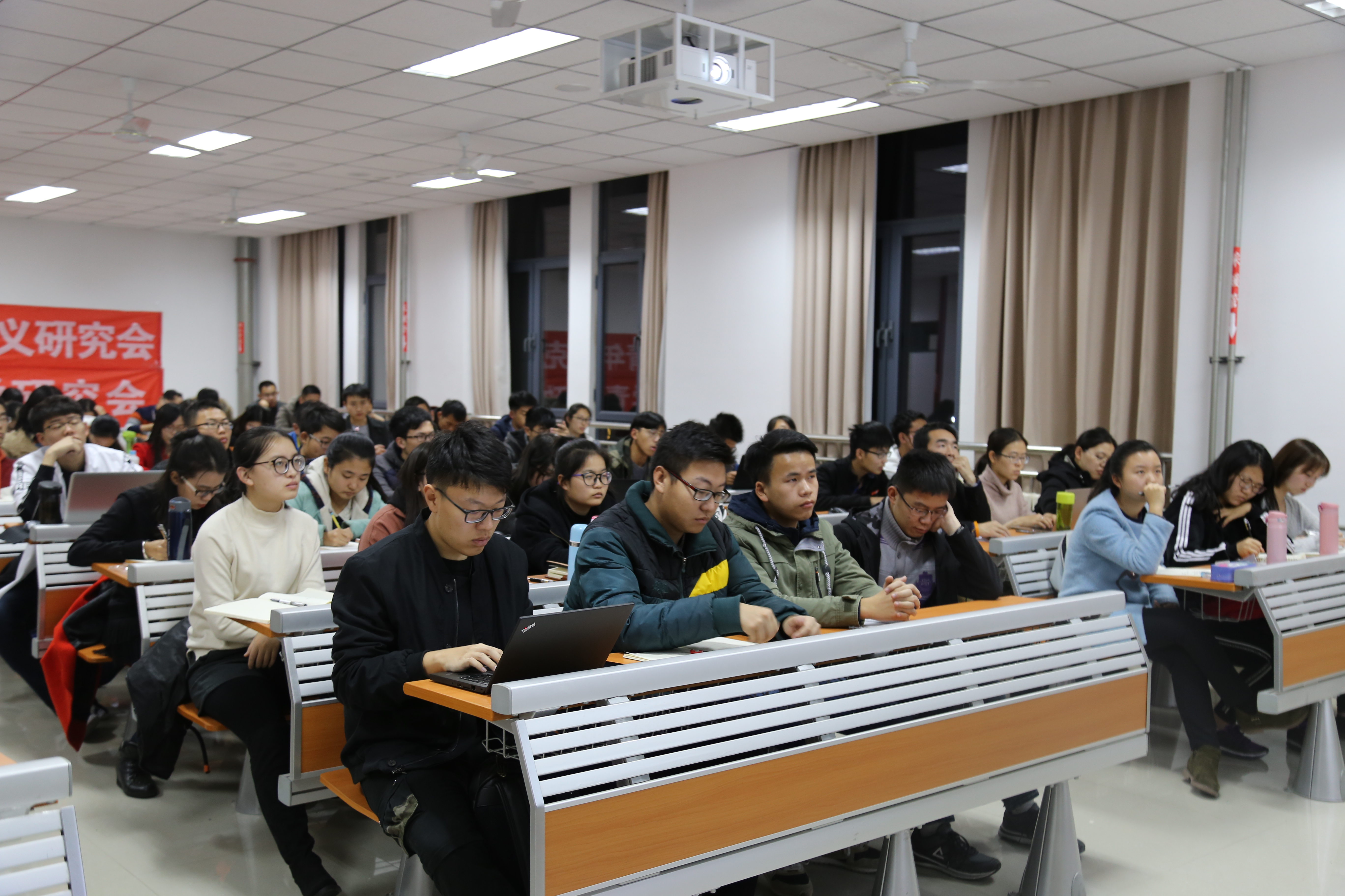 11月29日晚6点30分由滚球买球的app官网青年马克思主义研究会、滚球买球的app官网青年政治研究会以及2016级滚球买球的app官网科学社会主义班承办的滚球买球的app官网“育贤讲堂”系列活动之“新时代中国特色社会主义理论的世界意义”主题讲座在振声院E201教室成功举办。为深入贯彻党的十九大的思想,弘扬中国特色社会主义的时代性与科学性,滚球买球的app官网组织此次讲座,为使同学们更加深入地了解十九大、了解新时代中国特色社会主义。