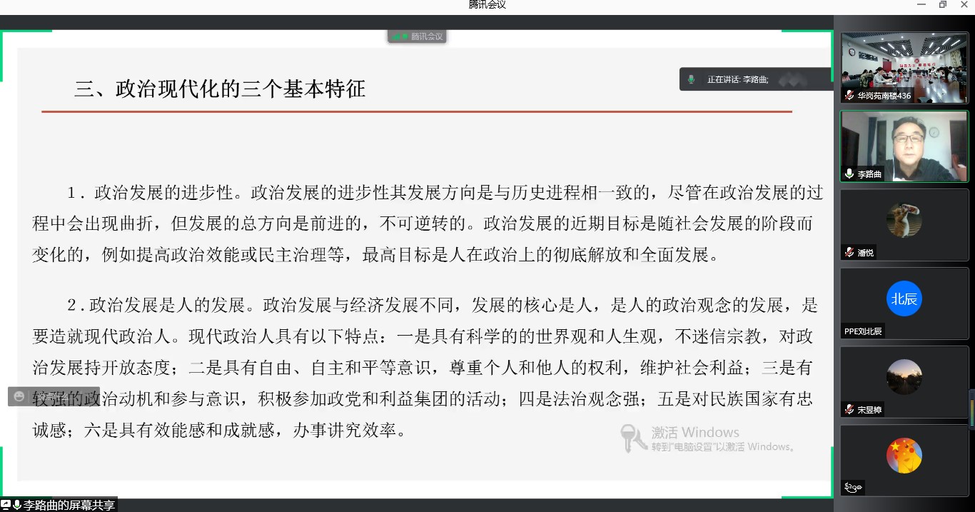12月15日晚,上海师范大学哲学与法政学院李路曲教授应邀为滚球买球的app官网PPE基地班作了题为“比较政治学的范式变迁”的线上讲座。讲座由滚球买球的app官网副院长李济时教授主持。青岛和济南两地PPE基地班和部分其他专业的同学参加了讲座。
