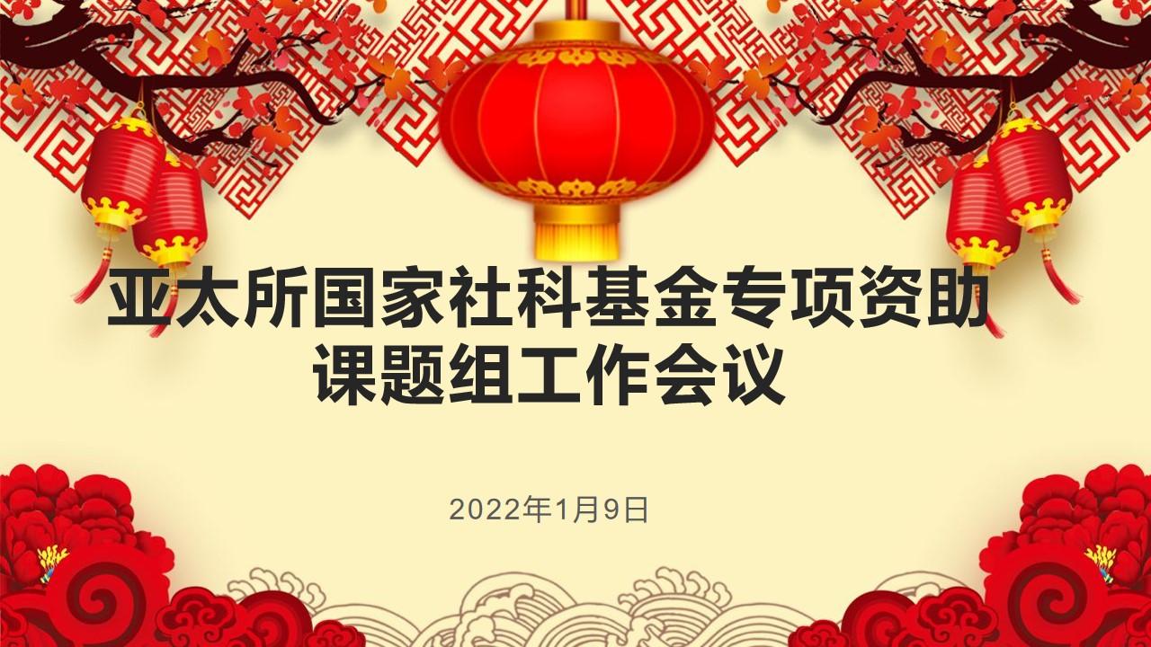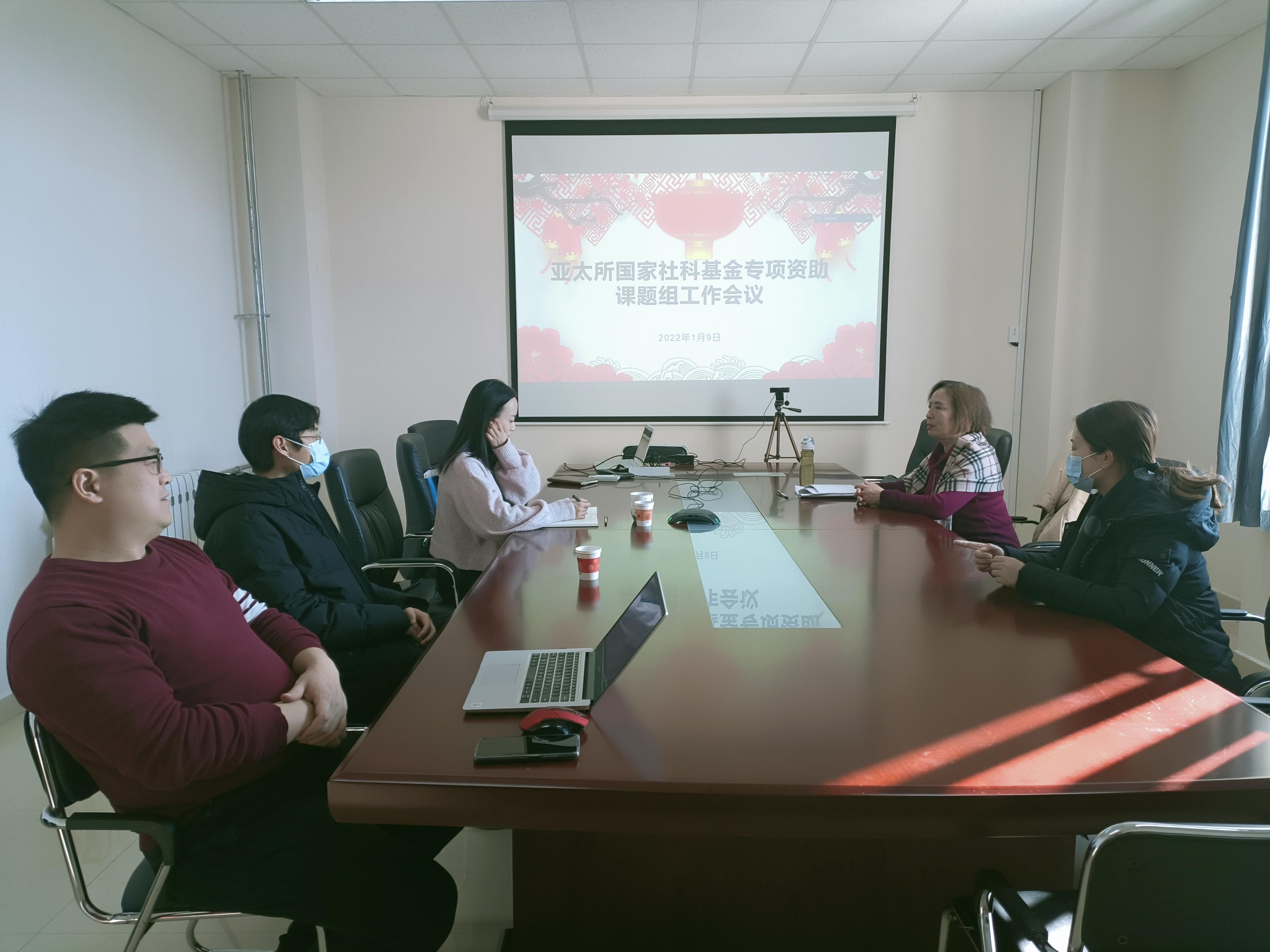 1月9号上午,滚球买球的app官网亚太所国家社科基金专项资助课题组成员工作会议在华岗苑南楼会议室举行。课题组首席专家亚太所所长杨鲁慧教授,子课题负责人、副所长赵玙佳副教授、副所长钟诚副教授、亚太地区环境与中国周边外交研究中心副主任赵婷副教授、亚太经济贸易合作研究中心副主任林琳副教授、亚太大国关系与地区安全研究中心主任王鹏权博士和李国辉博士等相关课题组成员通过线上线下的方式参加会议。会议由副所长钟诚副教授主持,杨鲁慧教授做重点发言及课题指导。