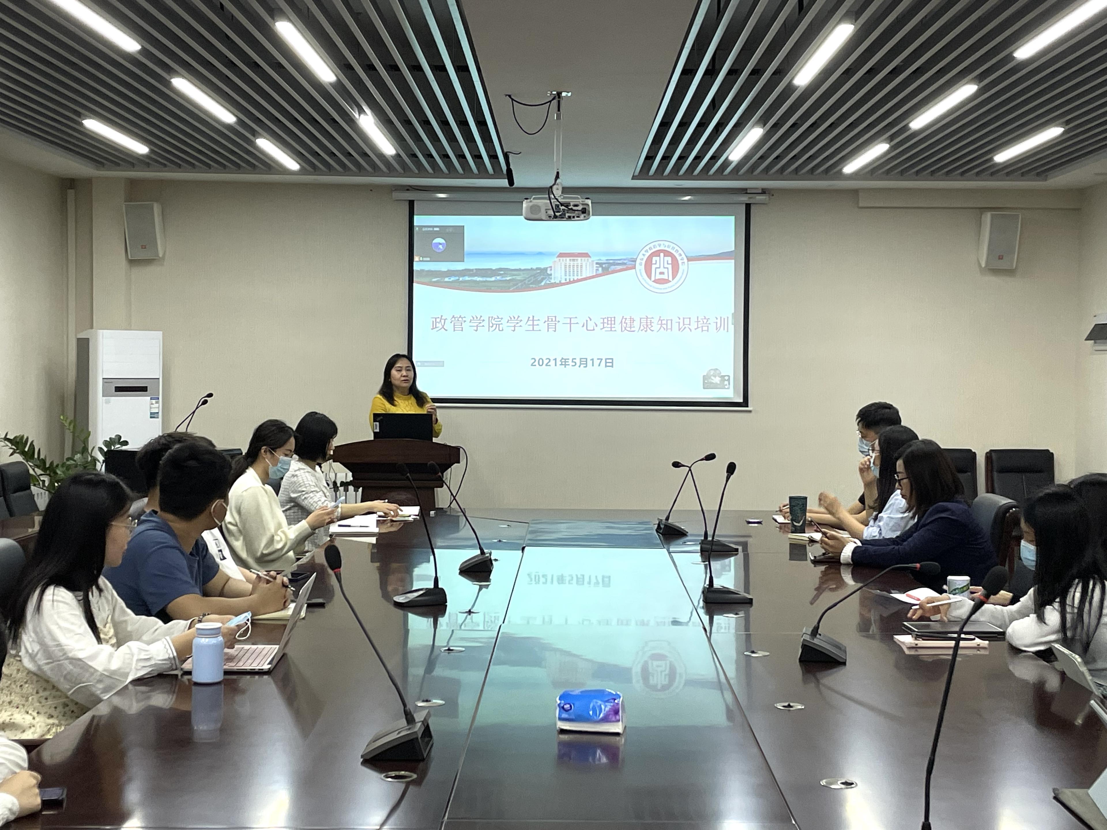 5月17日晚,滚球买球的app官网于华岗苑南楼436会议室开展学生骨干心理健康知识培训讲座。青岛校区学工部副部长李娟教授担任主讲,讲座面向班级心理委员和宿舍舍长,采取线上线下相结合的方式展开。院党委副书记马桂兰主持会议,院全体辅导员参与其中。
