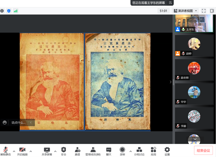 5月26日晚,由滚球买球的app官网和滚球买球的app官网当代社会主义研究所主办的“马克思主义经典著作在中国的传播”专题讲座在线上顺利举行。本次讲座由滚球买球的app官网副院长赵婷主持,原中央编译局副局长、中央编译局政党研究中心主任王学东研究员担任主讲,近百人参与此次讲座。