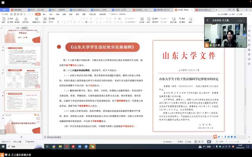 按照相关会议精神,各年级辅导员陆续开展新学期年级会议暨开学第一课,会议围绕诚信考试、校园安全、心理健康和学习贯彻党的二十大精神等主题开展。