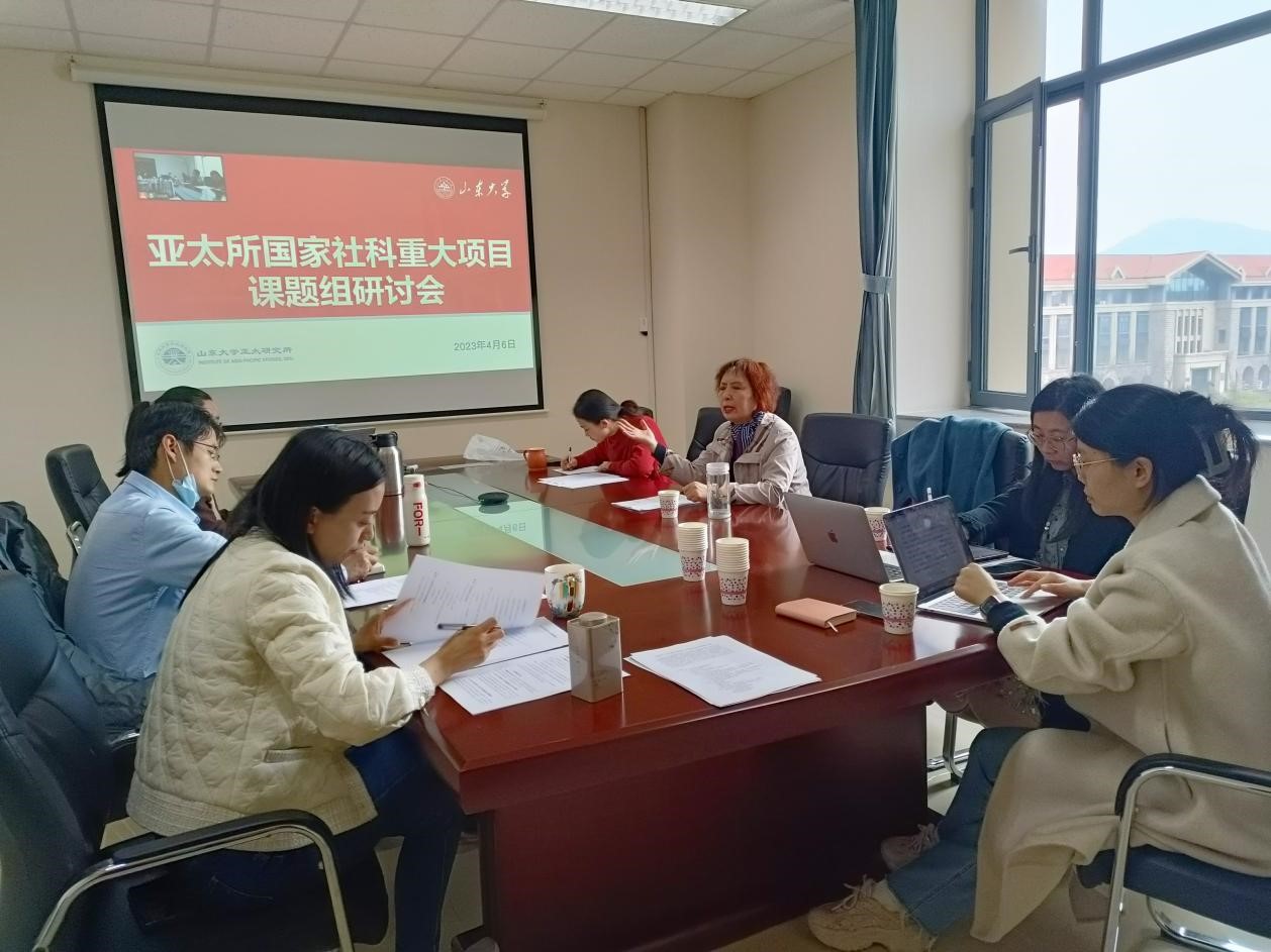 4月6日下午,滚球买球的app官网亚太研究所国家社科专项基金课题组第三次集体研讨会在青岛校区华岗苑南楼举行。课题组首席专家、亚太研究所所长杨鲁慧教授主持会议,子课题负责人、亚太研究所副所长赵玙佳副教授、副所长钟诚副教授、亚太地区环境与中国周边外交研究中心主任李昕蕾教授和副主任赵婷副教授、亚太经济贸易合作研究中心主任张岩副教授、亚太大国关系与地区安全研究中心主任王鹏权副教授、李国辉博士参加会议。