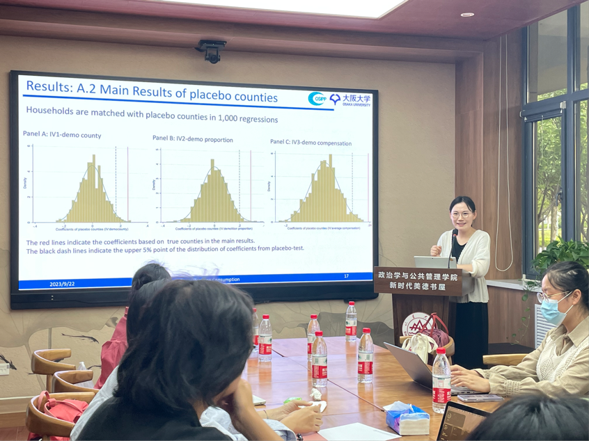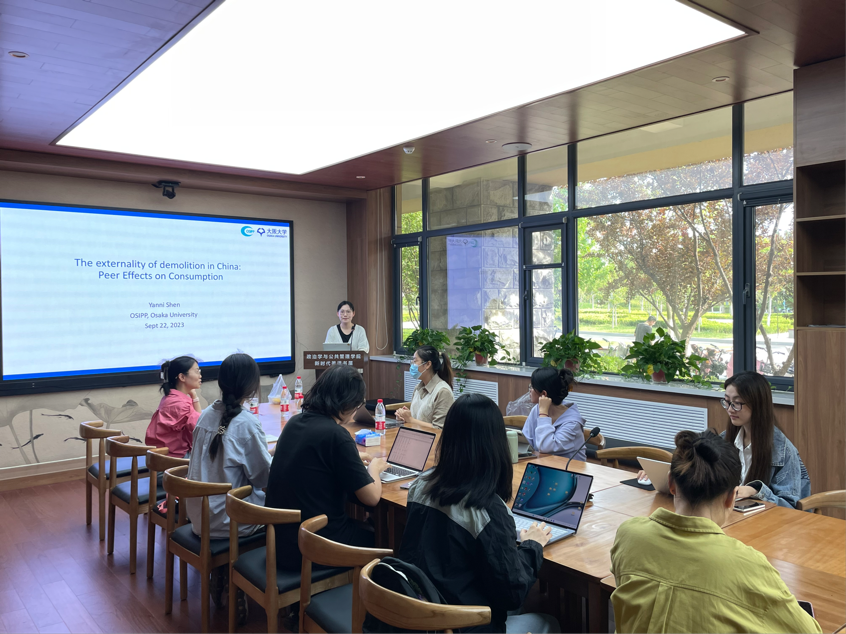 9月22日下午,滚球买球的app官网公共管理系2023-2024学年秋季学期第三期望远青年学者沙龙于华岗苑一楼美德书屋举办,讲座主题为“中国拆迁制度的外部效应——同伴效应对消费的影响”。本次讲座由日本大阪大学国际公共政策研究科助理教授沈燕妮主讲,滚球买球的app官网助理研究员李梦丹主持,学院多名硕士生、本科生参与。