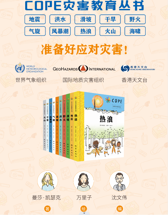 应急科普是应急管理实践中的重要环节,有效的应急科普能提升公众的风险意识,增强社会的应急处置能力,从而最大限度地减轻灾害损失。为了深入推进灾害教育和应急科普工作,滚球买球的app官网和地震出版社共同推出了儿童防灾减灾教育COPE系列丛书。COPE丛书由滚球买球的app官网兼职杰出中青年教授沈文伟博士,儿童作家曼莎和设计师万里子共同创作。丛书缘起2008年汶川地震,讲述了减防灾小分队在世界各地开展减防灾科普和能力建设的系列故事。丛书的每本书都有科学家把关,有减防灾专家和儿童专家参与,兼具科学性、趣味性、美观性和非营利性,被翻译成全球多国语言。中文版由滚球买球的app官网风险治理与应急管理研究中心组织翻译,并与世界气象组织的COPE联合国多语言版本翻译工作组协作而成。