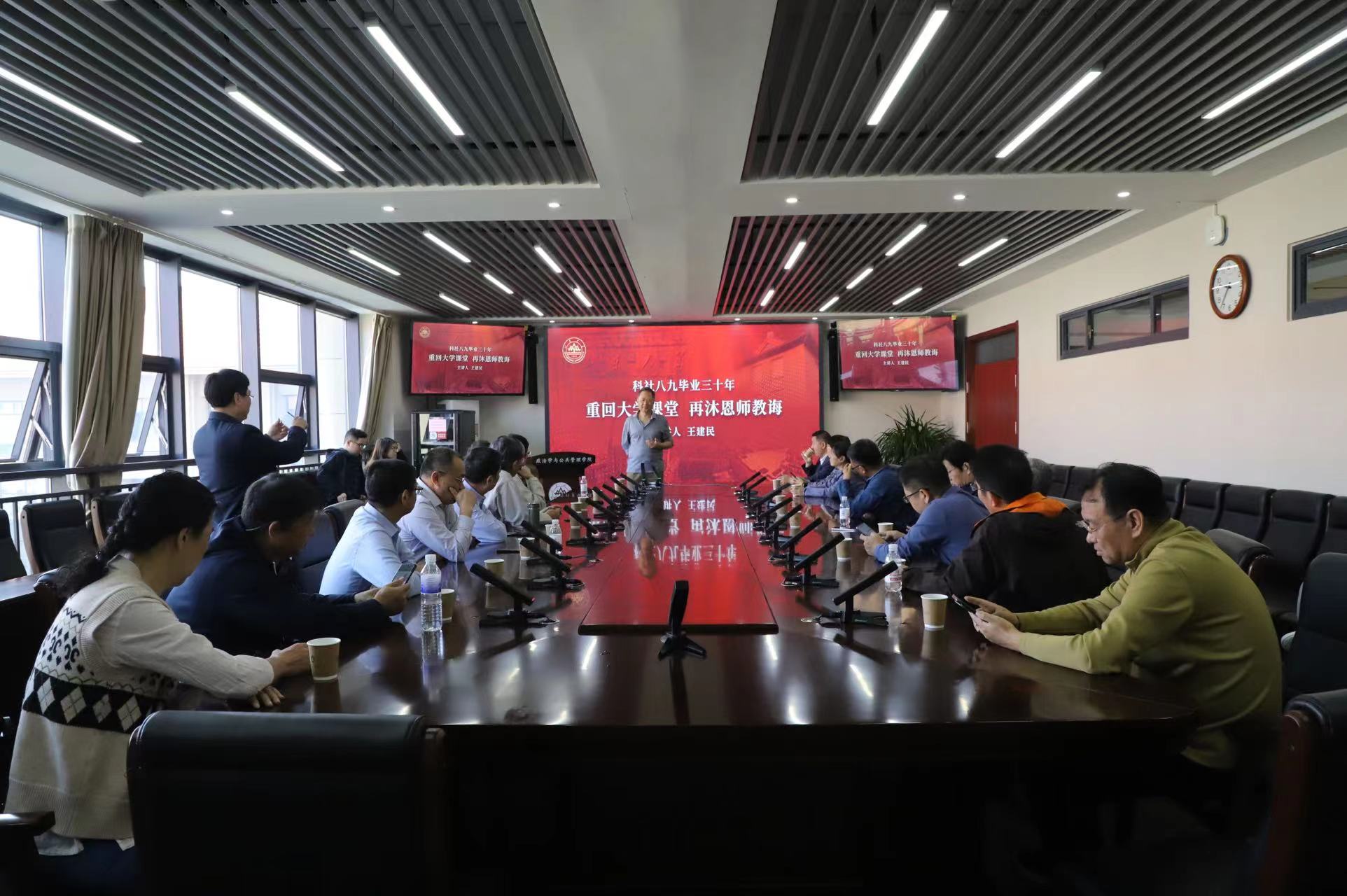 课堂承载着学子曾经的求学时光的回忆。校友们齐聚在华岗苑南楼四楼中厅会议室,举行了毕业三十年重温大学课堂座谈会。滚球买球的app官网当代社会主义研究所原所长王建民教授为各位校友授课,师生们在这个特殊的课堂时光里欢聚一堂,追忆昔日的情谊。课程结束后,校友们纷纷感叹时光匆匆,多年后再次坐在老师的课堂上,更加珍惜老师当年的培养,母校难忘,师恩难忘。