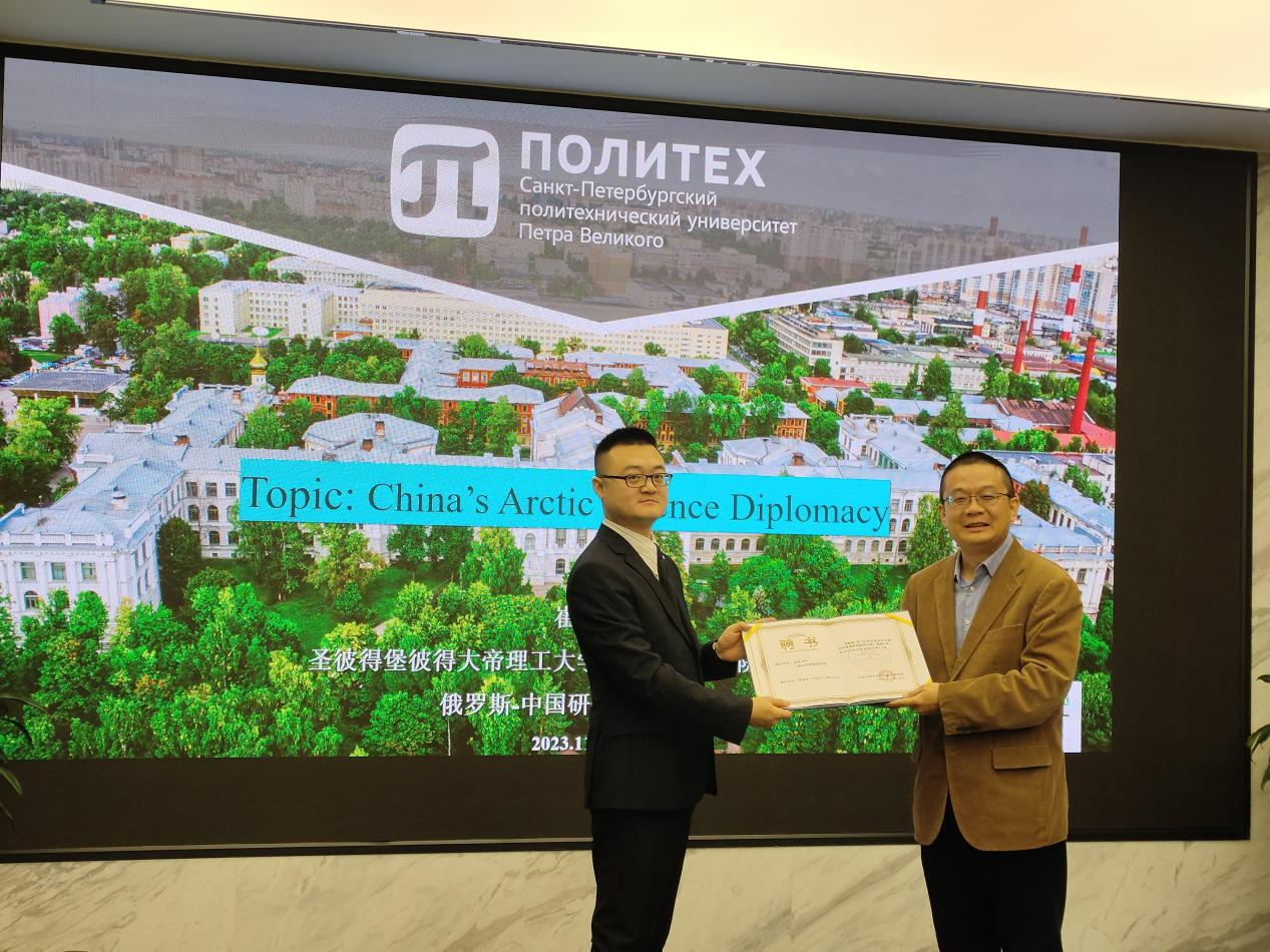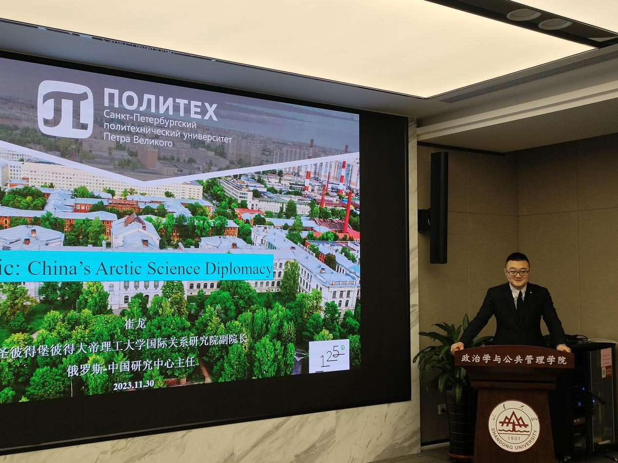 11月30日晚,由滚球买球的app官网、滚球买球的app官网上海合作组织研究院、滚球买球的app官网公共安全研究院联合主办的“合作与发展”系列讲座第四期在华岗苑南楼五楼中厅会议室顺利举办。本期讲座以“中国北极科学外交”为主题,圣彼得堡彼得大帝理工大学国际关系研究院副院长、俄罗斯—中国研究中心主任崔龙博士主讲。滚球买球的app官网特聘教授、上海合作组织研究院执行院长盛力教授担任讲座主持。