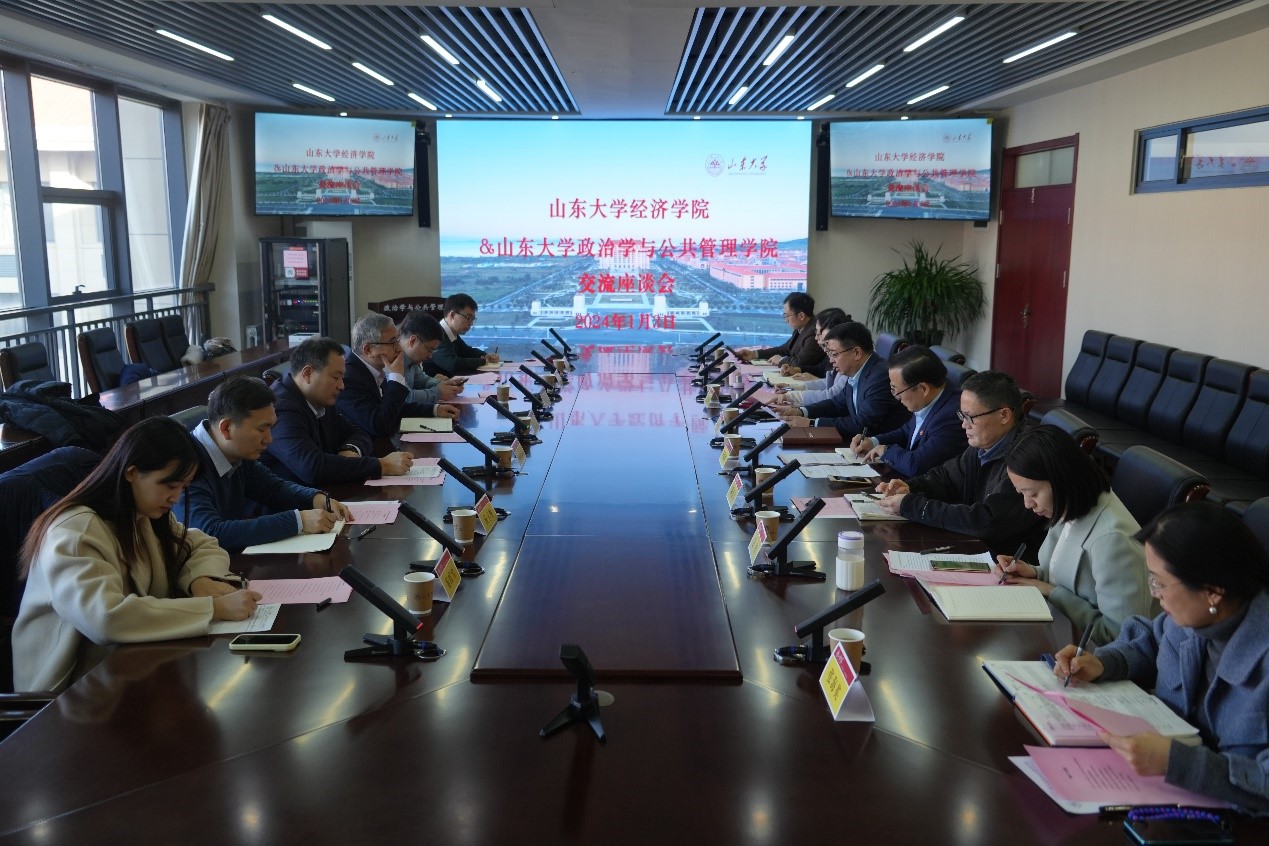 1月3日下午,滚球买球的app官网与经济学院交流座谈会在青岛校区举行。座谈会围绕交叉学科建设、高水平科研队伍与教学团队建设、推动两院具体合作等主题展开讨论。经济学院院长林平、党委书记董春杰,滚球买球的app官网院长马奔、党委书记李海燕及双方领导班子成员参加座谈会。