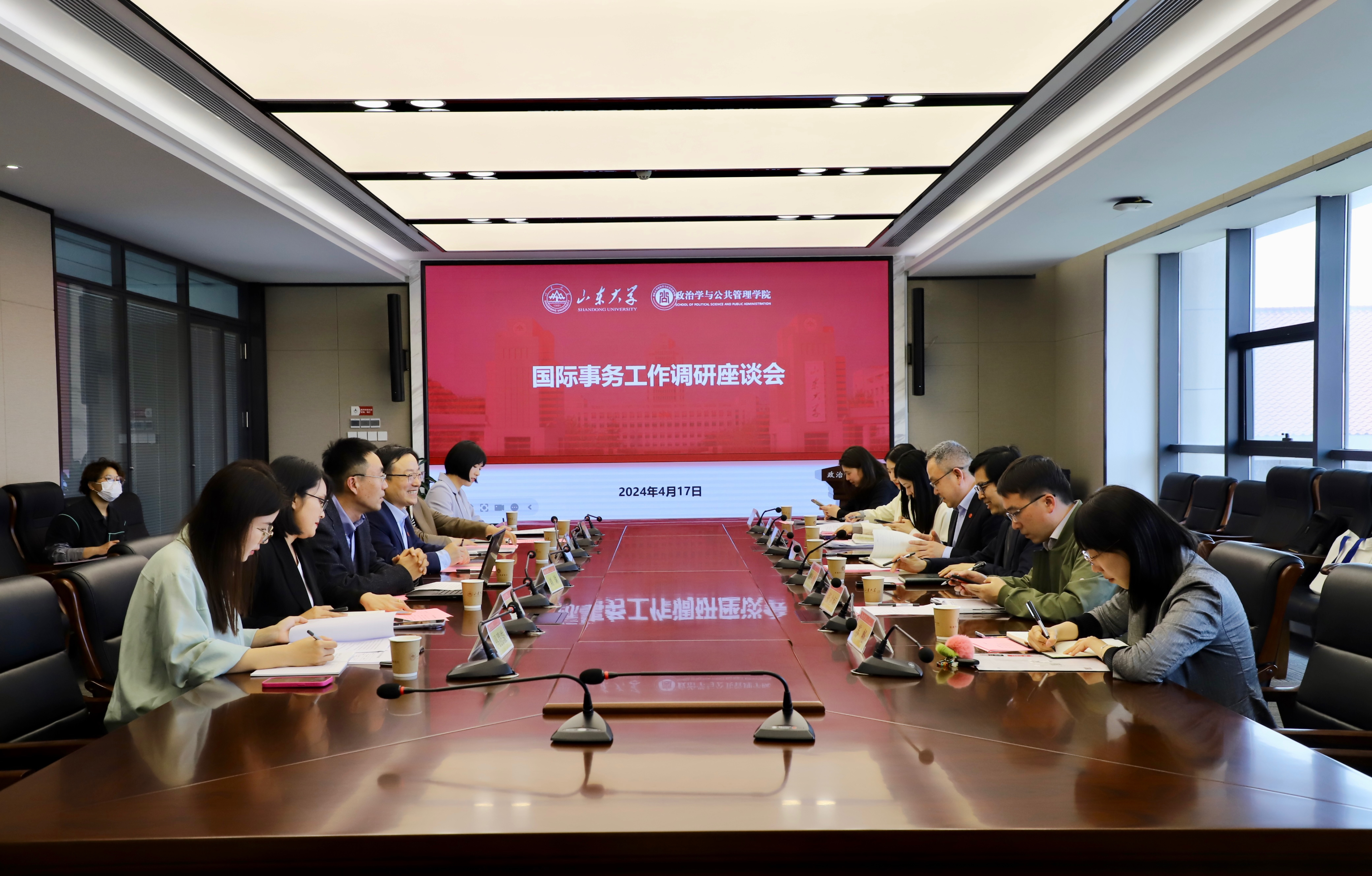 4月17日下午,滚球买球的app官网国际事务部与滚球买球的app官网国际事务工作调研座谈会顺利召开。国际事务部部长徐希锋、国际事务部副部长、青岛校区国际事务办公室常务副主任周传恩以及国际事务部各项目官员出席本次座谈。座谈由滚球买球的app官网党委书记李海燕主持,学院各部门相关负责人参加座谈。