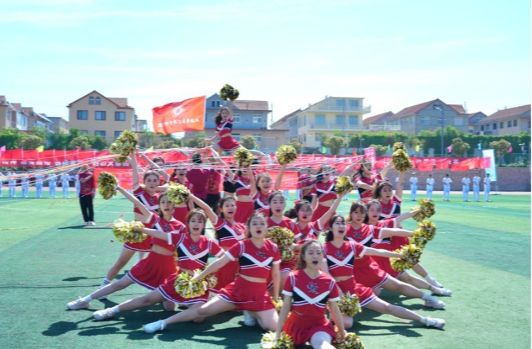 朝气蓬勃的团体操代表队。我院本科和研究生团体操团队用精彩的表演为参赛选手加油,同学们舞动花球,热情洋溢,以“强国有我勇担当”的信念,巧妙运用彩带、飘带、气球等元素,为表演增添了无数亮点,赢得了领导和观众的阵阵喝彩。