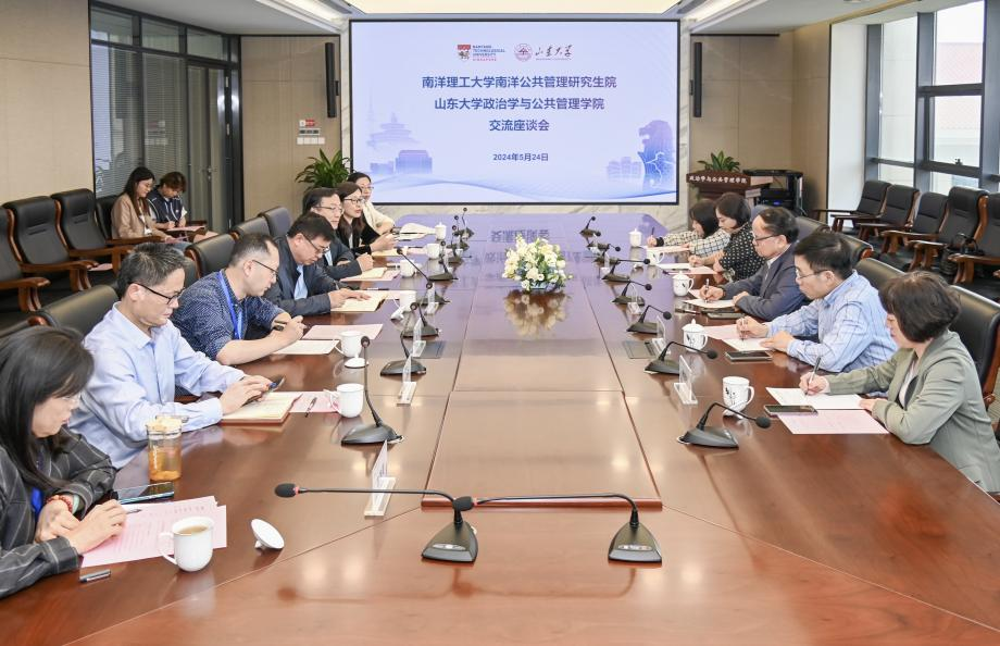 5月24日下午,新加坡南洋理工大学南洋公共管理研究生院与滚球买球的app官网交流座谈会在滚球买球的app官网青岛校区华岗苑顺利召开。南洋理工大学协理副校长、南洋公共管理研究生院院长刘宏,南洋公共管理研究生院副院长戴世岩,滚球买球的app官网院长马奔出席座谈会。会议由滚球买球的app官网党委书记李海燕主持。