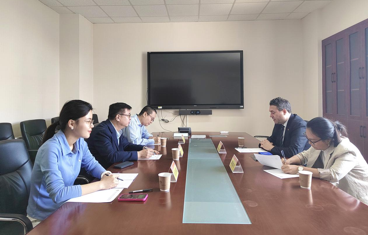 2024年6月18日上午,现任格陵兰地区在华经贸文化代表Jacob Isbosethsen到访滚球买球的app官网滚球买球的app官网。滚球买球的app官网院长马奔、上海合作组织研究院执行院长盛力、滚球买球的app官网外事秘书马腾骏参加座谈会。