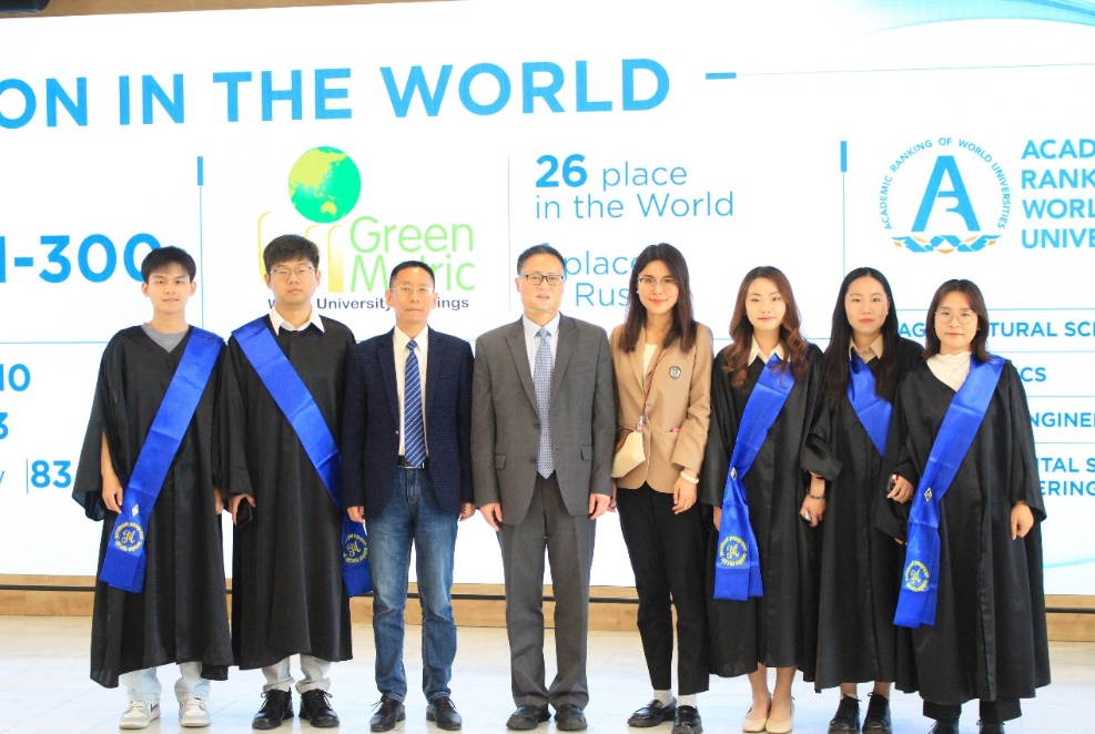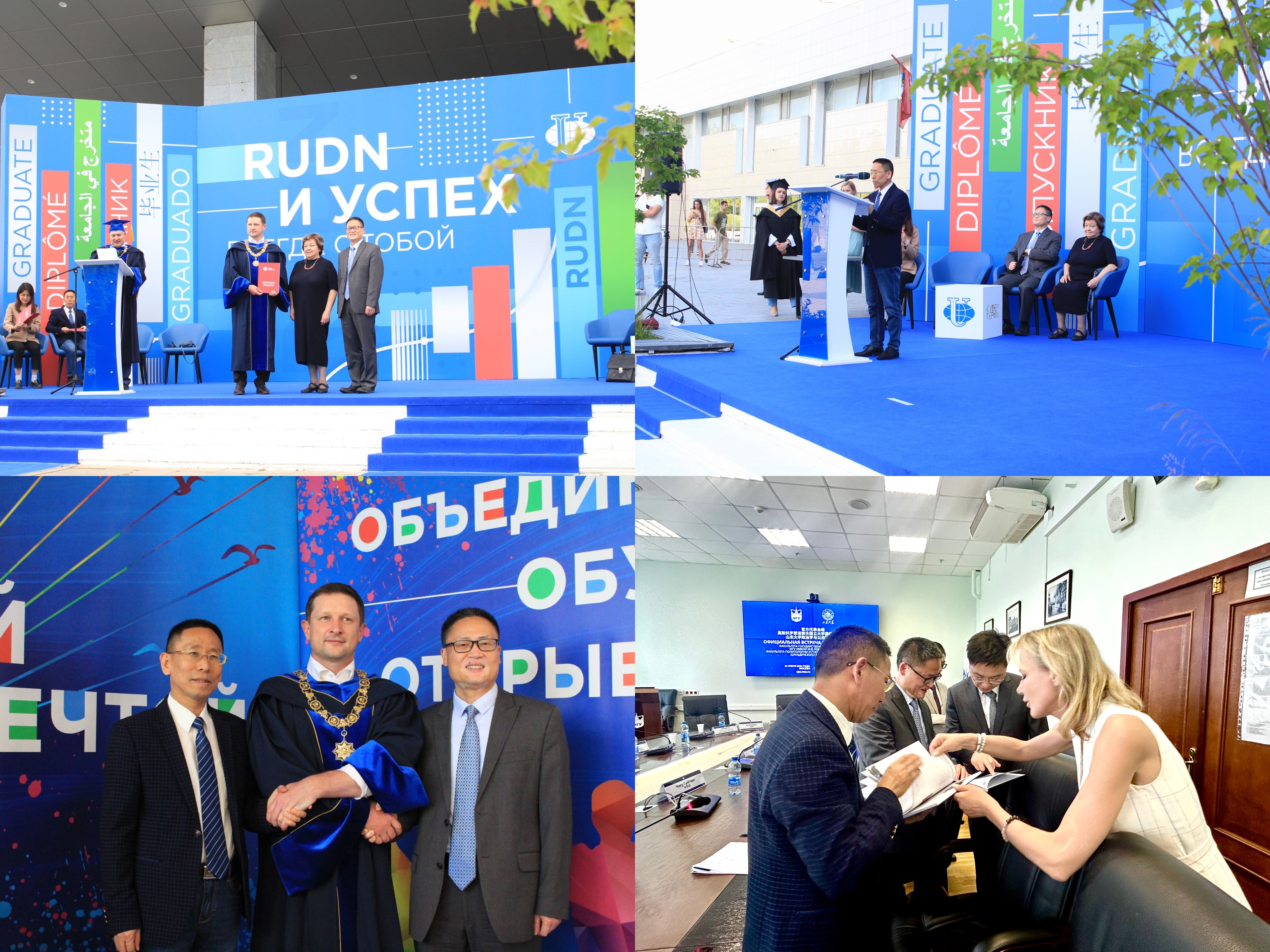 25日下午,代表团应邀出席了俄罗斯人民友谊大学人文社会科学学院举行的毕业典礼。毕业典礼上,俄罗斯人民友谊大学校长为滚球买球的app官网马风书教授、黄登学教授颁发了荣誉证书,表彰他们对两校学生联合培养项目等所做出的突出贡献,黄登学致辞表示感谢。随后,朱贵昌与俄罗斯人民友谊大学校领导共同为两校联合培养的5名毕业生颁发了学位证书。