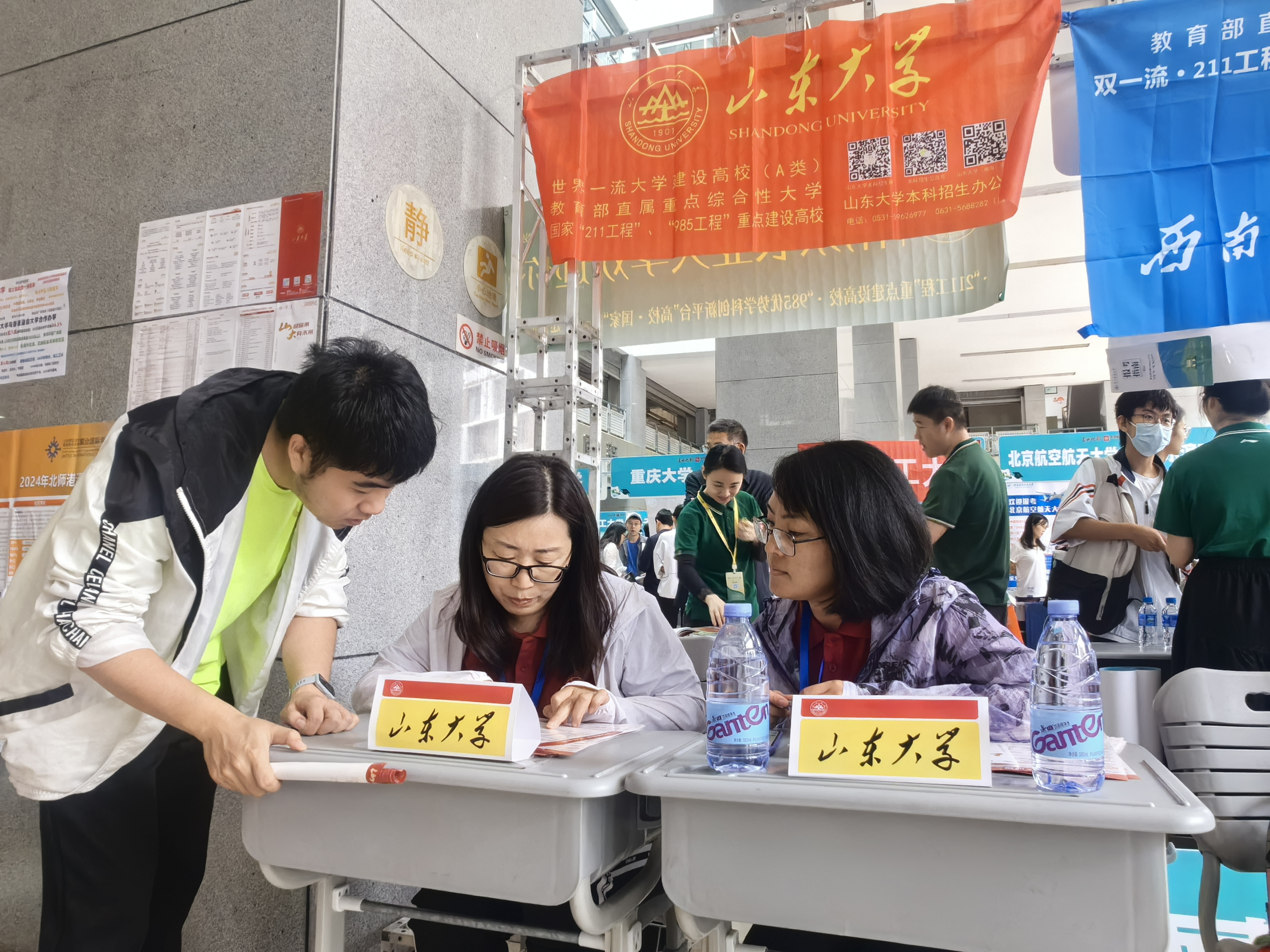 在济南、枣庄、青岛的高招会现场,老师们耐心解答考生关于报考位次、培养特色、师资队伍、就业去向、保研要求、特色班选拔和转专业、校园生活等方面的问题,并对前来咨询的考生及家长详细介绍了相关专业及选科要求,进一步让考生了解滚球买球的app官网,增进报考信心。