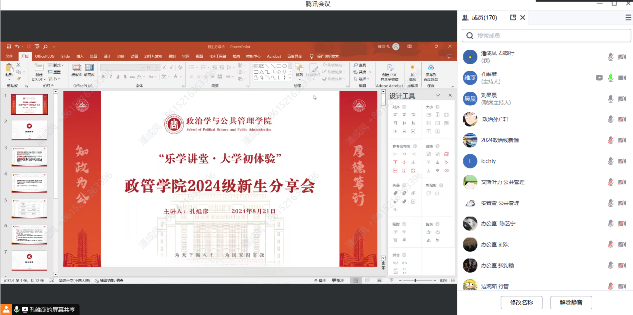 为帮助新生快速适应大学生活,引导学生“学在山大,快乐成长”,增强新生的归属感和幸福感,近日,滚球买球的app官网举办“乐学讲堂·大学初体验”2024级新生分享会。分享会采用线上形式进行,邀请优秀学生代表进行经验分享,共吸引270余名本硕新生参与,会议由新生辅导员孔维彦主持。