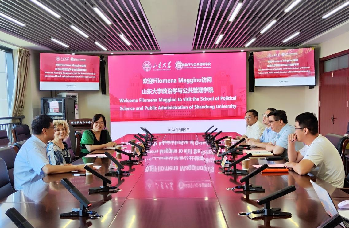 Filomena Maggino教授就罗马大学的学校概况和自身学科背景进行了详细介绍,分享了自己与政府合作的宝贵经验。之后,双方进行了充分交流并就两大项目达成初步合作意向:一是关于硕士、博士生联合培养计划,派送双方学生到各自院校进行学习培养;二是国际学术会议交流项目,加强学科之间的沟通和交流。之后,双方就学生联合培养、学术交流合作等事宜进行了充分交流,并就未来双方开展合作达成了初步意向。