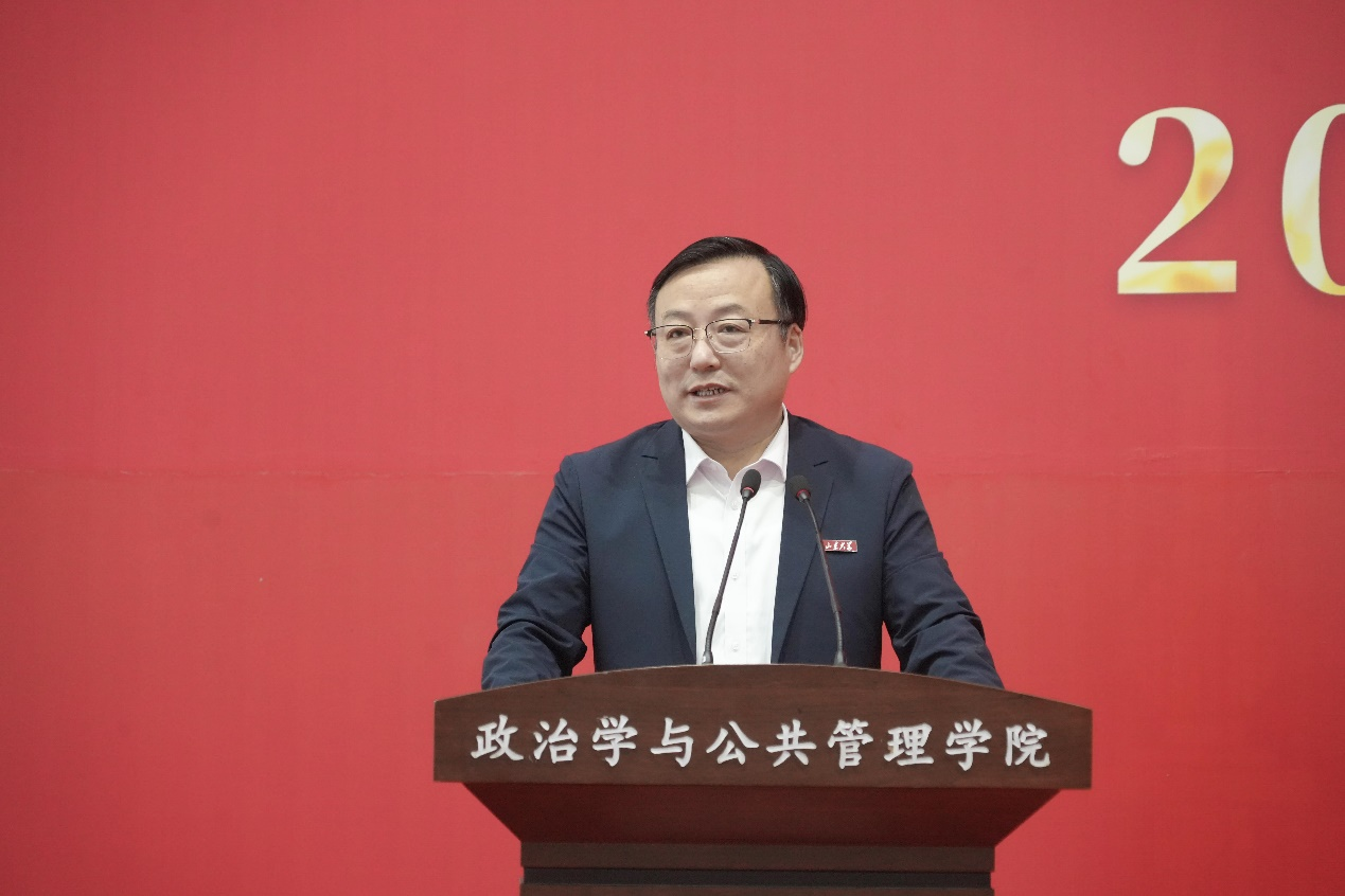 典礼在庄严的国歌声中拉开帷幕。马奔首先代表学院对2024级867名新生的到来表示热烈欢迎,并向步入人生新阶段的同学们提出了六点殷切希望:一是要培养变革性思维能力,用辩证的、批判的、合作的思维看待问题,学会独立思考、严谨求真、合作共赢;二是要练就强健的体魄,珍惜校、院宝贵的体育资源,“学在山大,快乐成长”,把学术探索与体育锻炼并重,实现全面发展;三是要拥有美丽的心灵,涵养共情的能力,既要在知识的殿堂里悟道明理,又要在心灵的田野上播种善良与希望,用实际行动诠释“知政为公,厚德笃行”的院训;四是要形成健全的人格,学会自我认知与接纳,懂得情绪管理与调节,培养坚毅不拔的毅力,迎接学习和生活中的各种挑战;五是要保持求知的欲望,去追寻那些尚未被发现的真理,敢于挑战权威、质疑既有观念,在学术的旅程中不畏登攀;六是要拓展全球视野,既要有“家国情怀”,又要有“世界担当、全球气度”,培养开放的思维,提高全球胜任力,为未来全球事务做出积极的贡献。