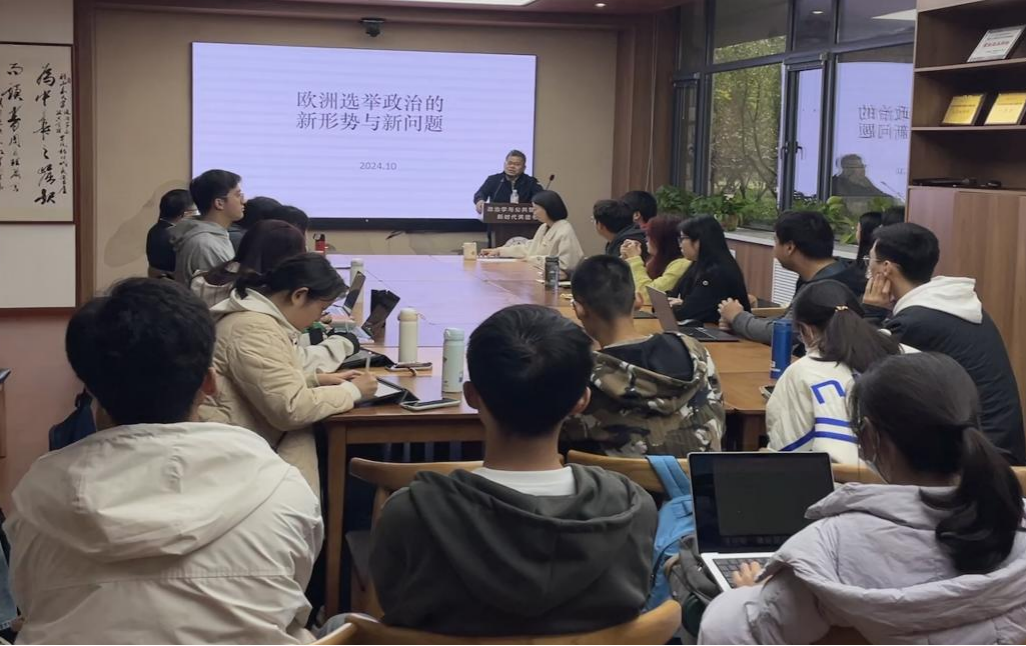 2024年10月21日上午,滚球买球的app官网“本本优本”活动暨社会主义前沿问题系列讲座于青岛校区华岗苑南楼新时代美德书屋举办。本期讲座以“欧洲选举政治的新形势与新问题”为主题,由中国政法大学政治与公共管理学院教授林德山主讲,滚球买球的app官网副院长赵婷主持讲座。滚球买球的app官网党委书记李海燕等学院师生参与交流。