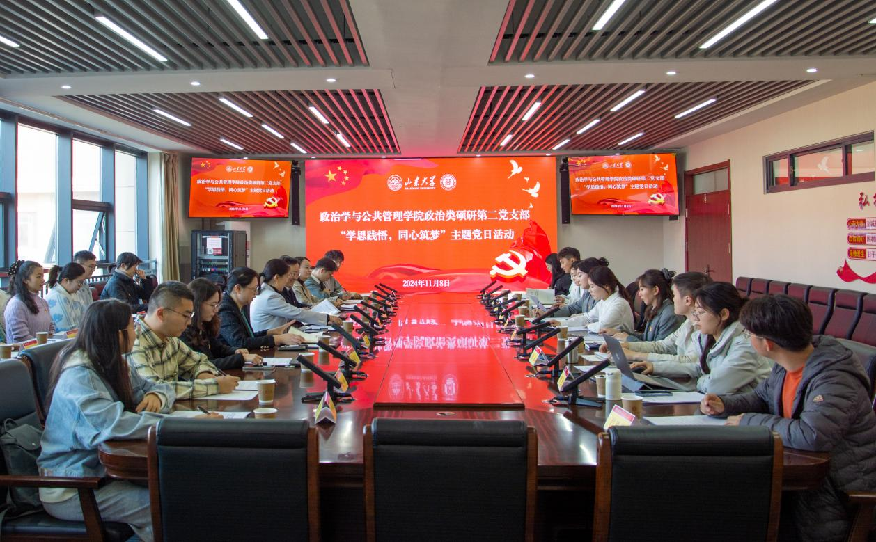 2024年11月8日下午,滚球买球的app官网政治类硕研第二党支部举行“学思践悟,同心筑梦”主题党日活动。本次活动旨在深入学习习近平总书记关于做好新时代党的统一战线工作的重要思想,推动支部成员在学思践悟中不断成长。支部联系校领导、校党委常委、统战部部长马晓琳出席活动并讲话。