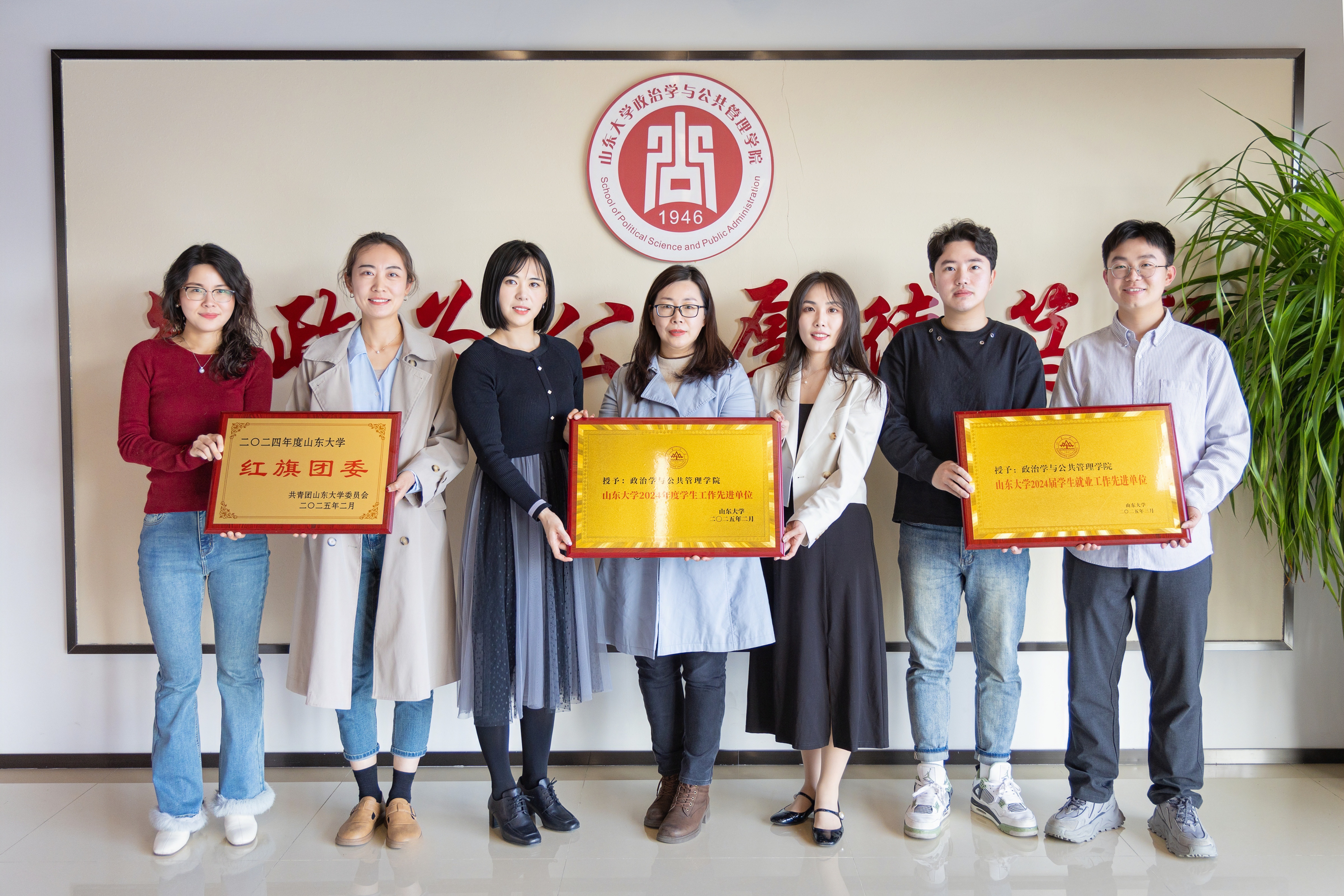 五育融合育新人,推动学生工作系统升级。德育铸魂。打造“新时代美德书屋”品牌,形成“一体两翼,双力协同”机制,入选全国“思想铸魂 网育新人”大思政课优秀案例,获评青岛市思想政治工作集体创新奖、全国学联“我为同学做实事”优秀项目等荣誉。智育增慧。打造“政学赛研”学术创新生态链,培育出模拟市长、模拟两会、模拟联合国、政思茶话会等一大批优质品牌活动,学生在挑战杯、新文科大赛等赛事中斩获国家级奖项10余项,学术创新持续突破。体育强身。组建各类体育兴趣团体 5 支,开展趣味体育活动 26 场,获“山大杯”系列赛冠亚季军等佳绩,校运会斩获7项荣誉,体育赛事屡创新高。美育润心。积极搭建美育平台,成功举办“启美讲坛”、“立德树人”大讲堂6期,组建4支学院艺术团,在合唱、团体操等比赛中屡获一等奖。劳育立行。完善劳育模式、深挖劳育项目、丰富劳育场域,2个项目入选2024年山东省普通本科高校优秀劳动教育典型项目,荣获校区劳动教育先进单位一等奖。