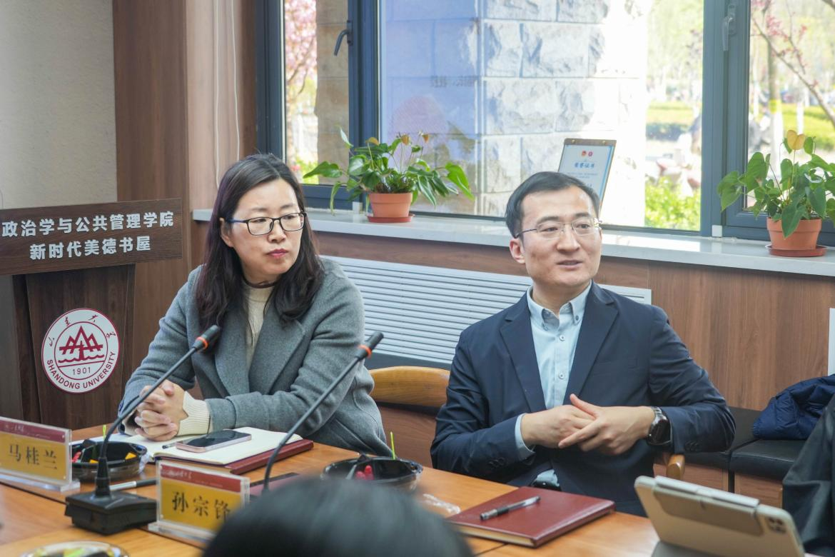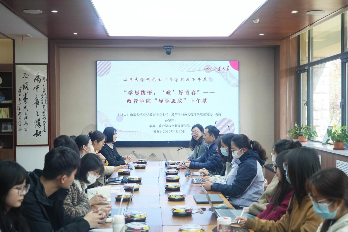 4月15日下午,滚球买球的app官网“学思践悟,‘政'好青春”导学思政下午茶活动在青岛校区华岗苑南楼新时代美德书屋举办。滚球买球的app官网MPA教育中心主任、滚球买球的app官网副院长孙宗锋教授担任主讲人,围绕自身学术见解与育人经验,为研究生带来一场精彩的思政教育专题讲座。活动由学院党委副书记马桂兰主持,30余名硕士研究生参与此次活动。