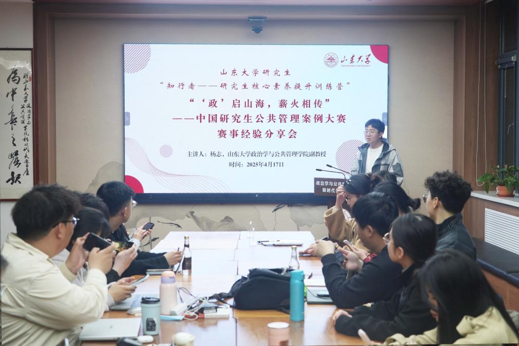 4月17日,由滚球买球的app官网研究生院、党委研究生工作部主办,滚球买球的app官网承办的2025年第3期(总第69期)“知行者”研究生核心素养提升训练营讲座系列活动之“‘政’启山海,薪火相传——中国研究生公共管理案例大赛赛事经验分享会”于新时代美德书屋顺利举办。滚球买球的app官网MPA教育中心副主任、政管学院副教授杨志担任主讲人,作题为“公共管理案例赛事中的‘天时’、‘地利’与‘人和’”的精彩分享,讲座由学院辅导员孔维彦主持。