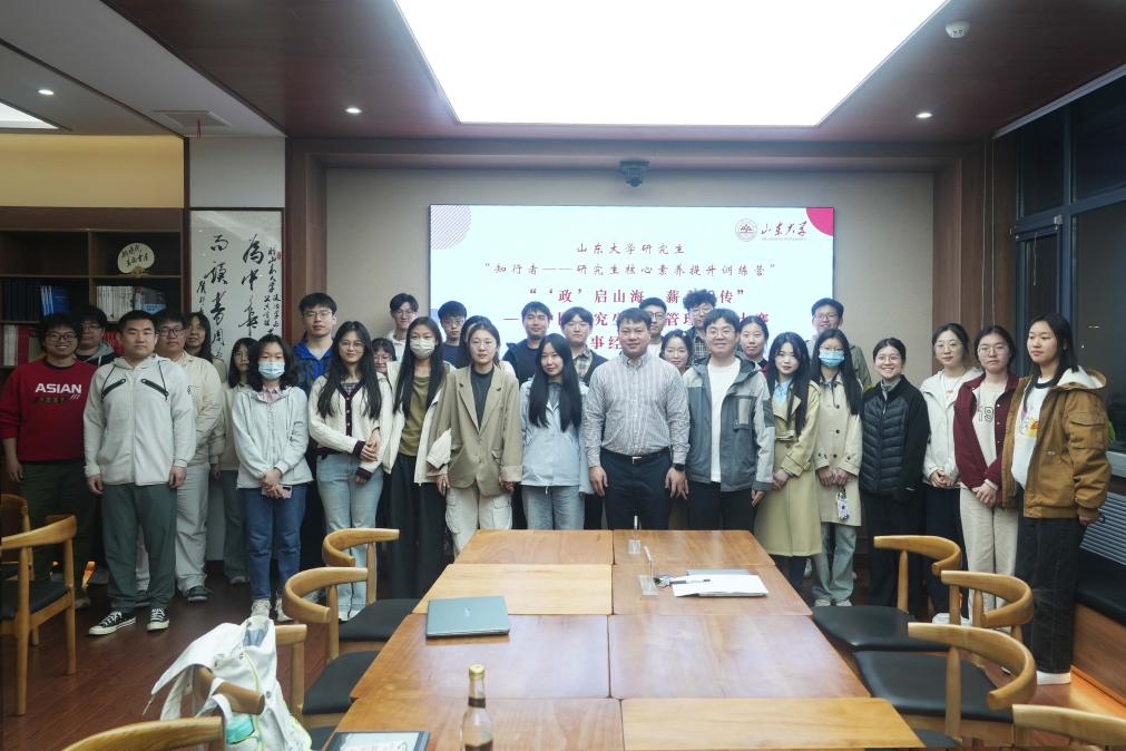 杨志围绕“公共管理案例大赛备赛经验与案例研究方法”这一主题,讲述了赛事背景、学院过往成绩、备赛策略及案例撰写要点四部分内容。其中,他特别指出“小切口大问题”的选题原则,强调案例需兼具典型性、创新性与故事性。同时,他还从团队协作角度,提出成员需优势互补,注重与指导老师的良性互动,以及学院在组织层面提供的调研、打磨文本等支持。此外 杨志进一步强调参与赛事要以“超前规划、全程投入”为准则,在选题中挖掘中国治理实践中的“山东经验”,将理论分析与案例故事深度融合。讲座最后,他鼓励同学们享受备赛过程,在团队协作中锤炼能力,既要以“代表山大”的责任感全力拼搏,也需以积极心态面对挑战,在案例研究中践行公共管理学科“理论联系实际”的核心追求。